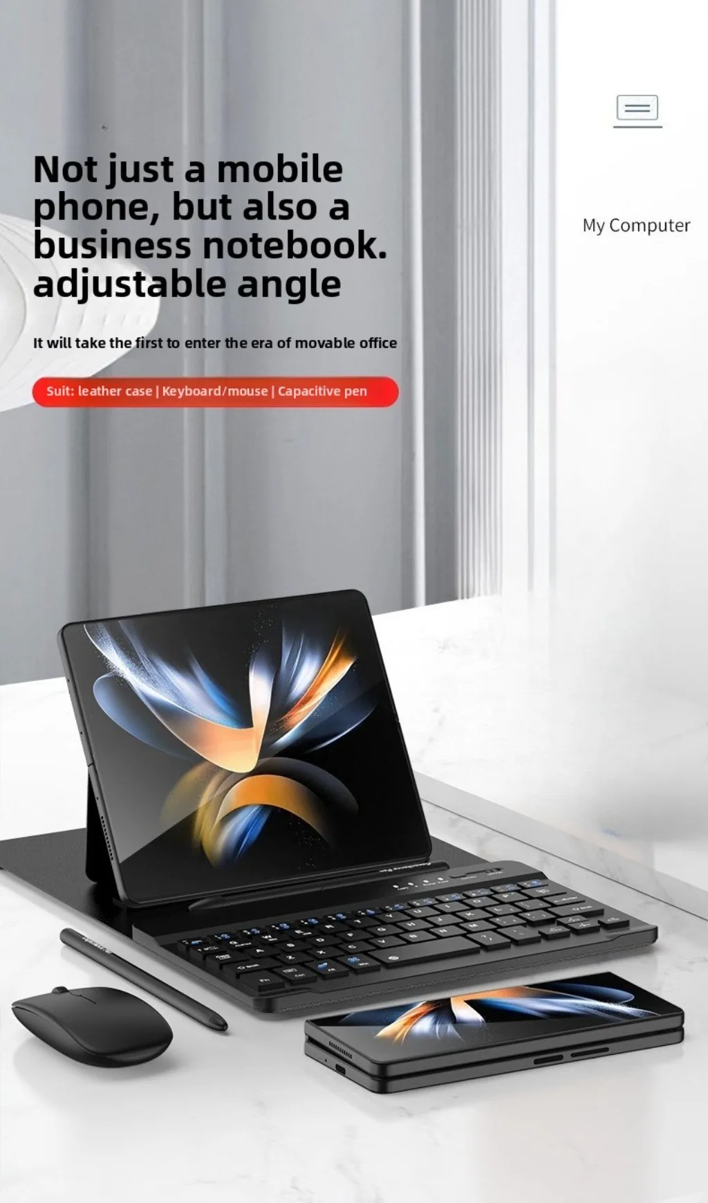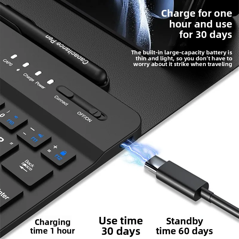 Suitable for Samsung Z Fold 7 6 5 4 Bluetooth Keyboard Ultra-thin Bracket Plain Leather Case Fold6 with