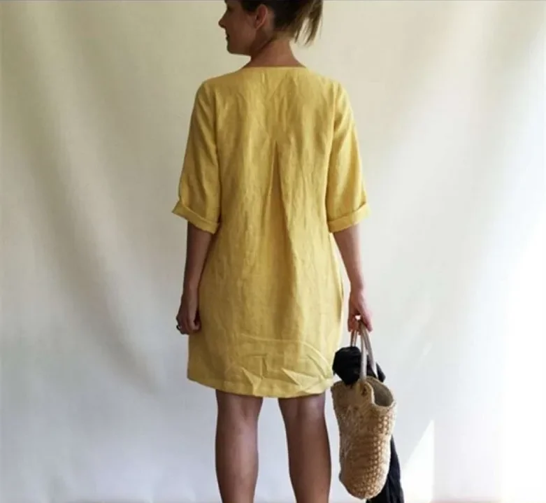 • Summer Freshness : Stay cool and stylish with our cotton-linen blend dress, perfect for summer days.