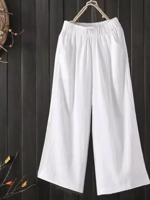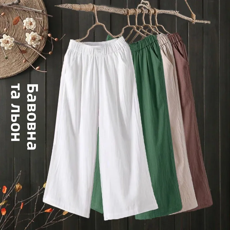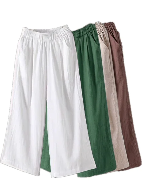 Summer 2024 Thin Wide Leg Cotton Linen Women's High Waist Straight Casual Pants Slimming Mom's Clothing Korean Sle Commute