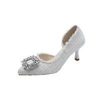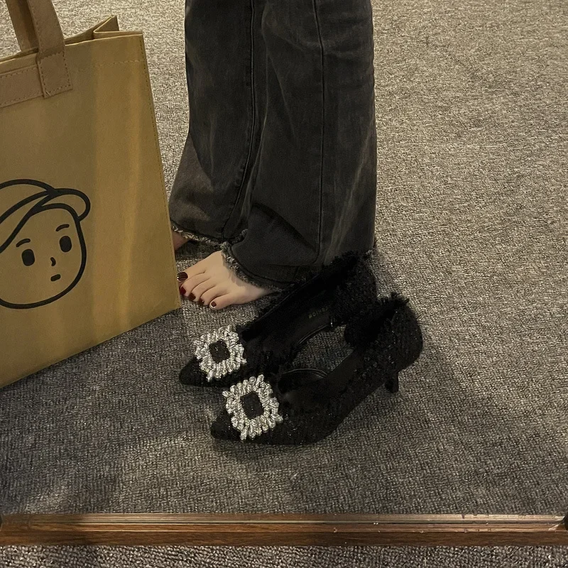 Summer 2025 French Design Pointed Toe High Heels Crystal Embellished Slim Stiletto Women’s Single