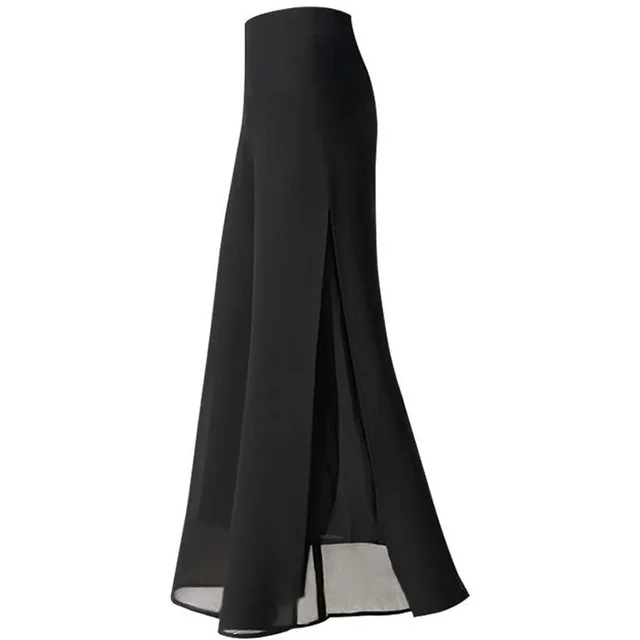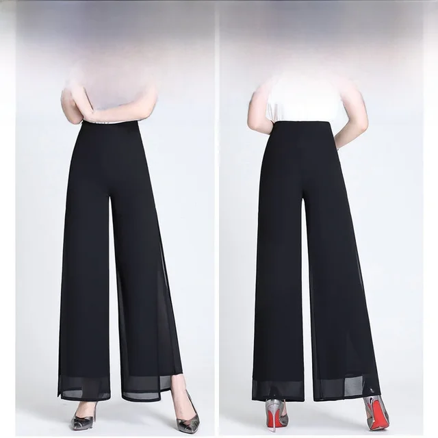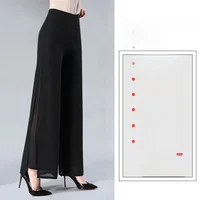 Summer 2025 New Double Layer Chiffon Wide Leg Pants Long Trousers for Middle-Aged Women High Waist Dra Split Pants Skirt