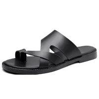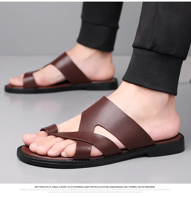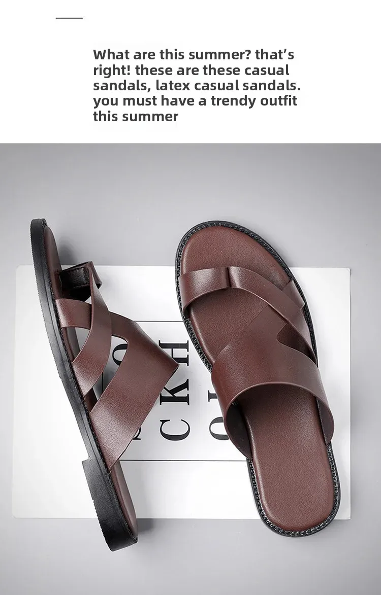 Summer 2025 New Large Size Casual Flat Bottom Slippers Sandals Independent Cross Toe Flat Sandals Men Rubber Sole Synthetic Uppe
