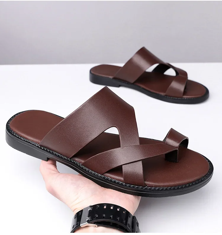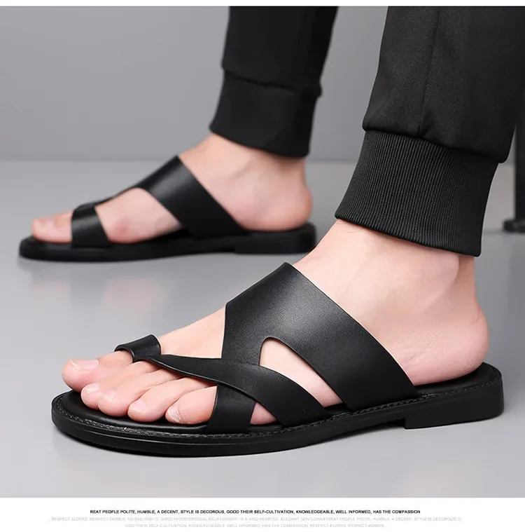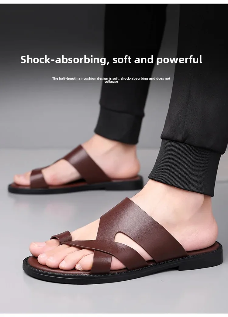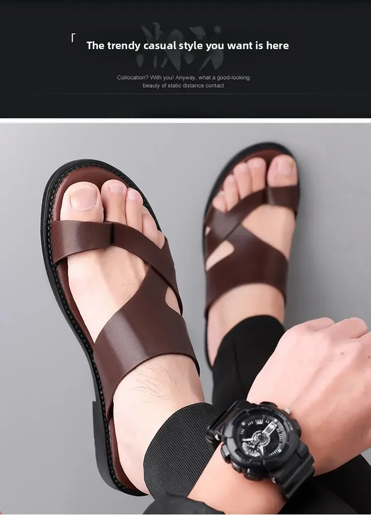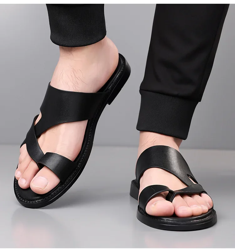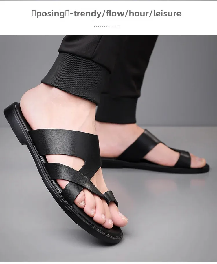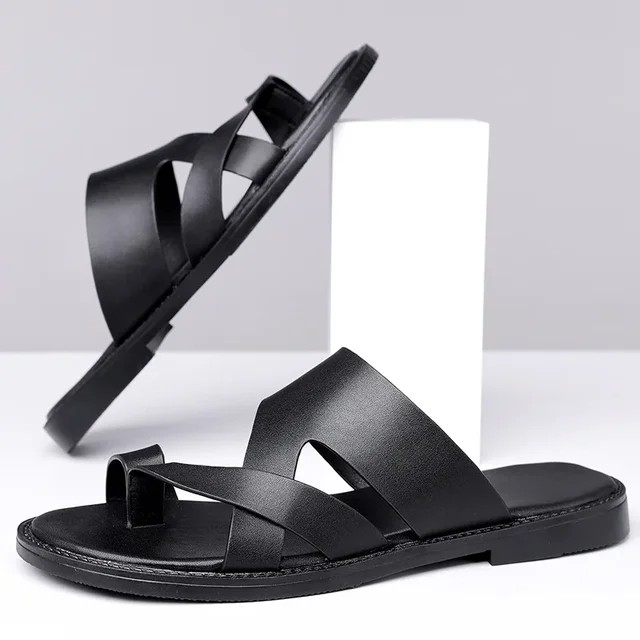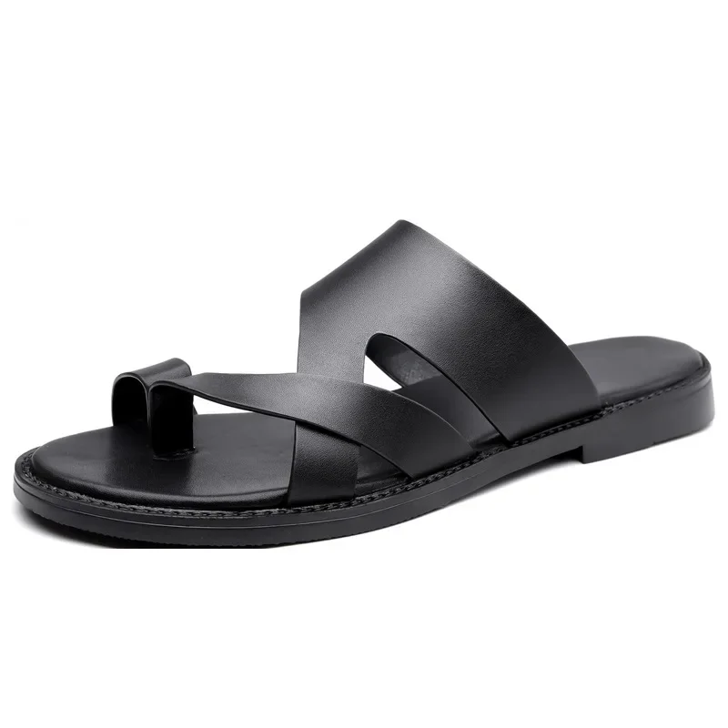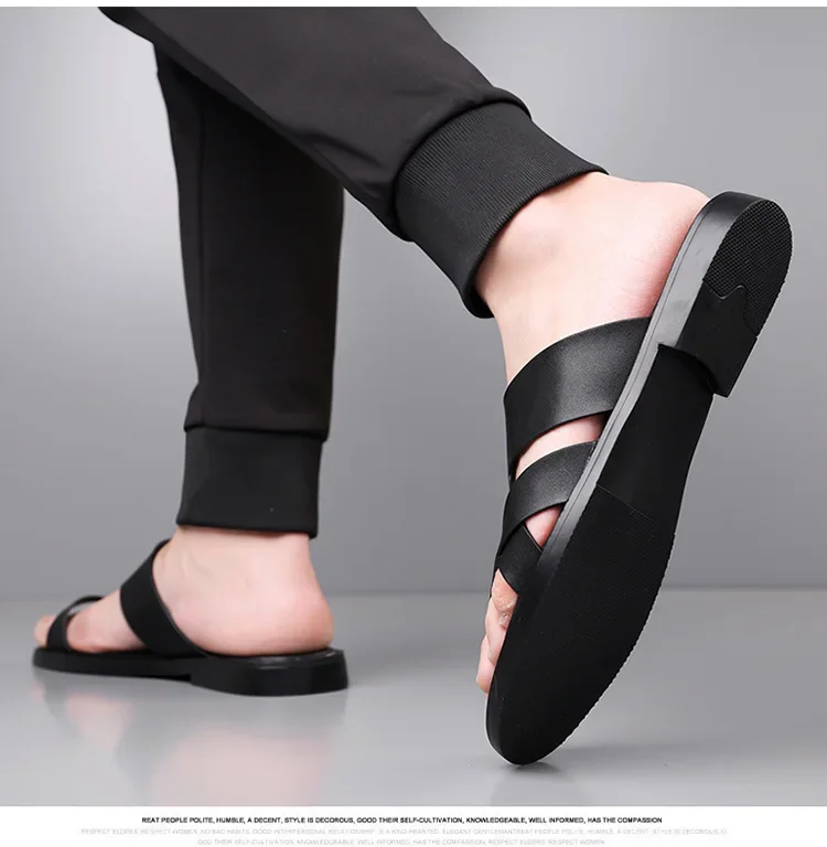 Summer 2025 New Large Size Casual Flat Bottom Slippers Sandals Independent Cross Toe Flat Sandals Men