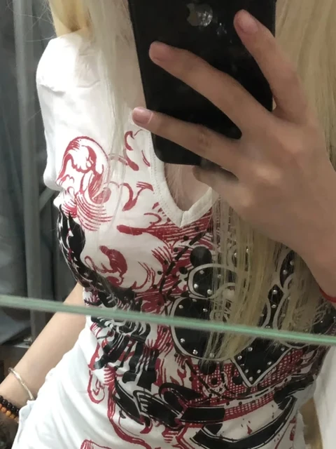 Summer American Sle Spicy Girl New Print ort Sve T-irt Women's Student Design Sensation  Sweet Cool Slimming Top