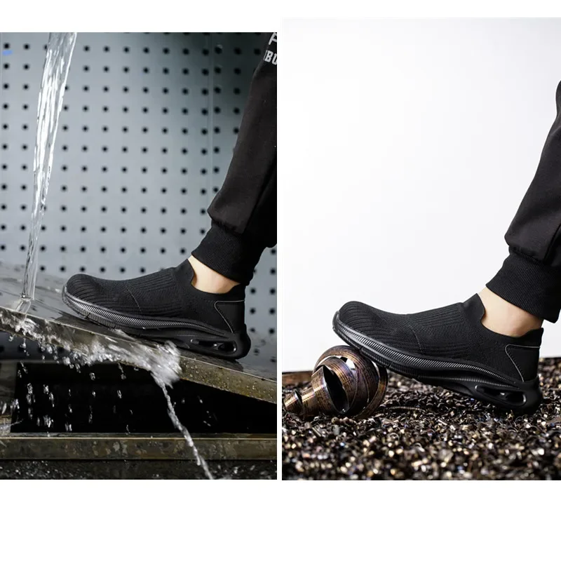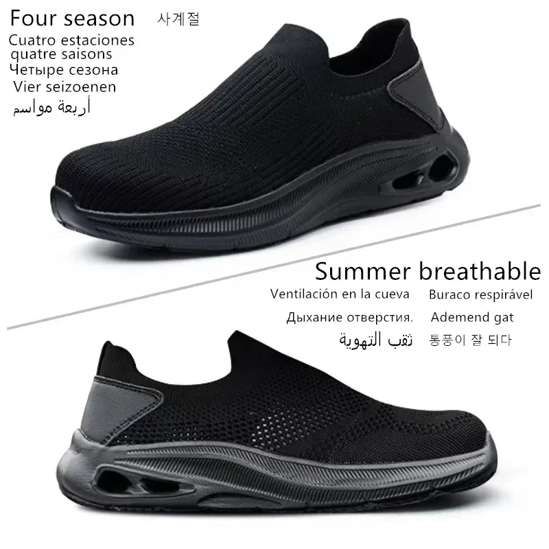 Summer Breathable Mens Work Safety Shoes Lightweight Steel Toe Anti Smashing Anti Slip Indestructible Male Boots Footwear