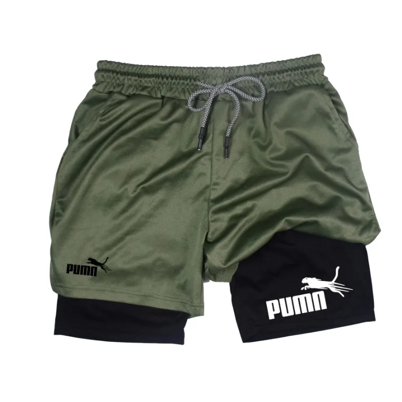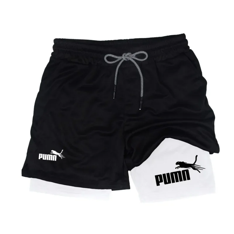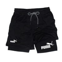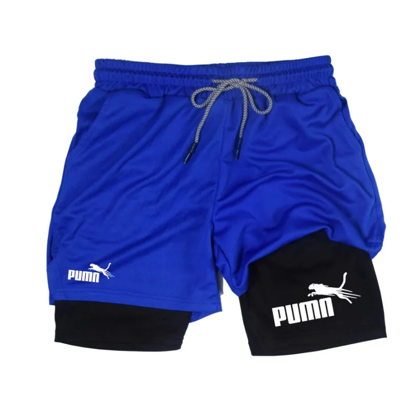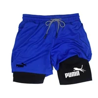 Summer Breathable Two-in-one Double-layer Shorts Men’s Elastic Compression Shorts Quick-drying