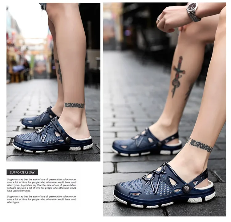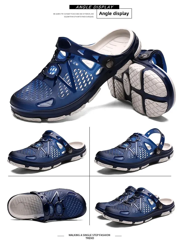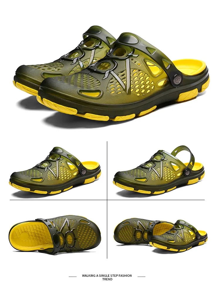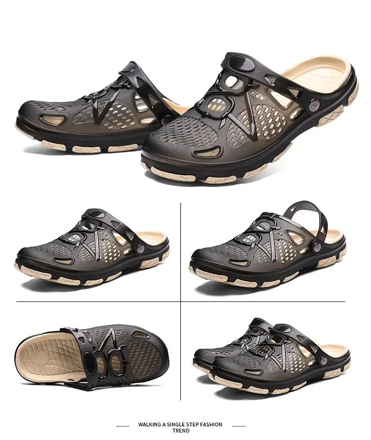 Summer Breathable Vented Shoes Men's Outdoor Beach Slippers Anti-Slip Wear-Resistant EVA Sole Sandals For Men's Casual Use