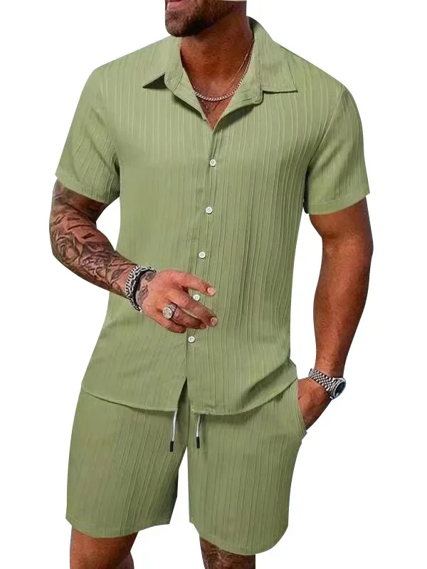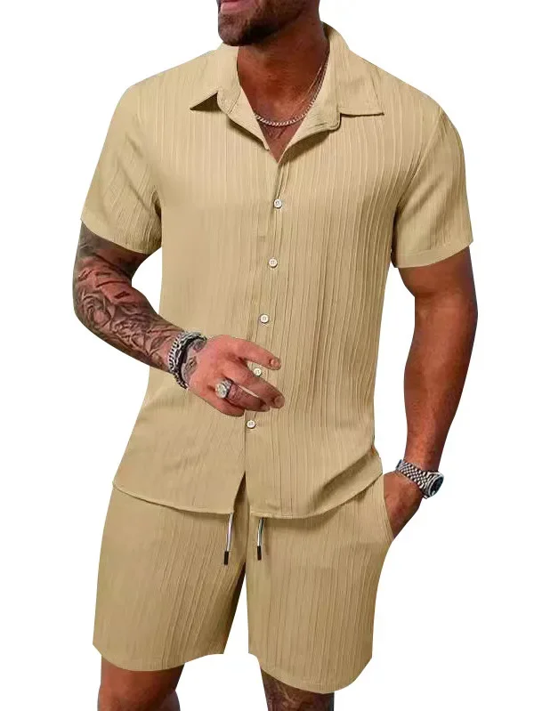 Summer Casual Men's Short Sleeve Shirt Beach Pants Set Lightweight Breathable Comfortable Beachwear Fashionable Street Style