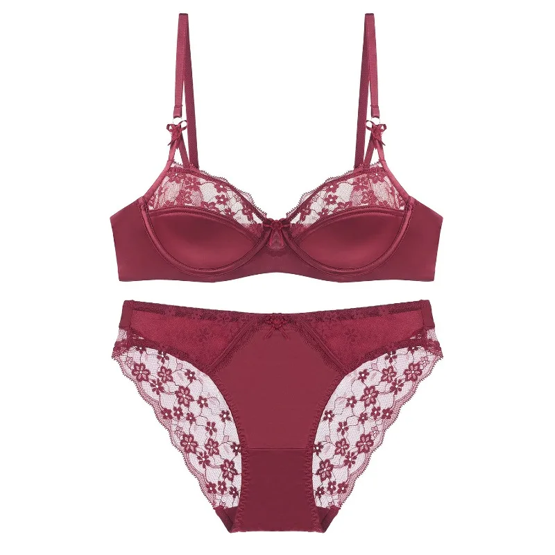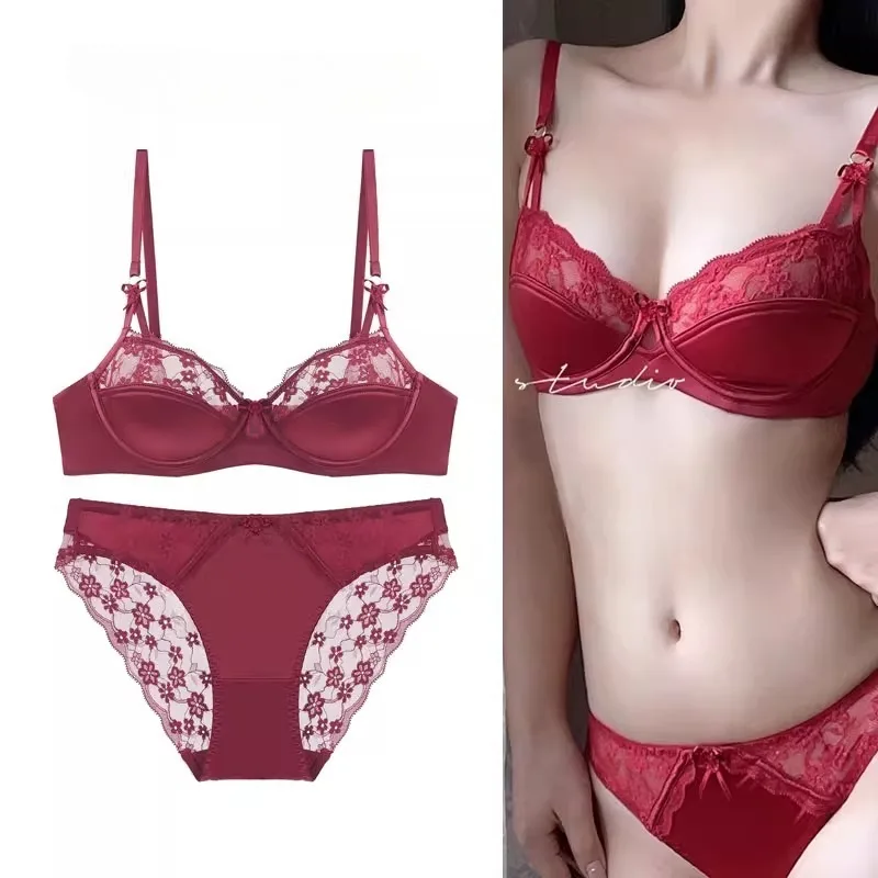 Summer Christmas Lingerie Set Large Bust Sexy Red Lace Bra Slimming Anti-Sagging, Romantic Gift Thin