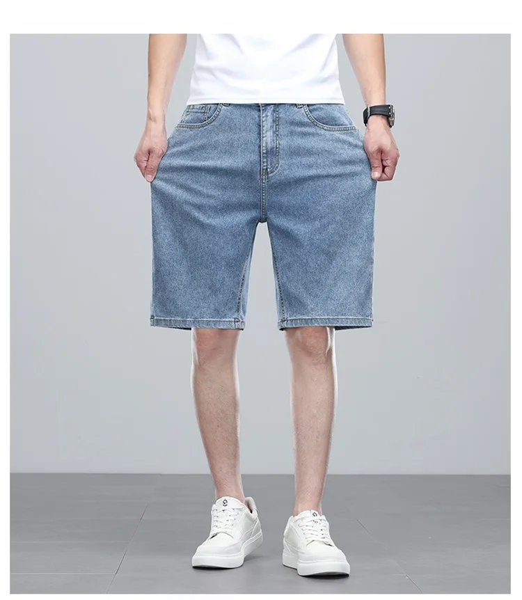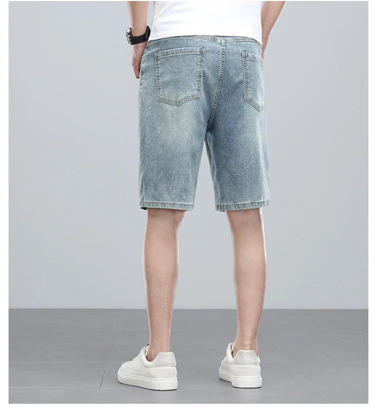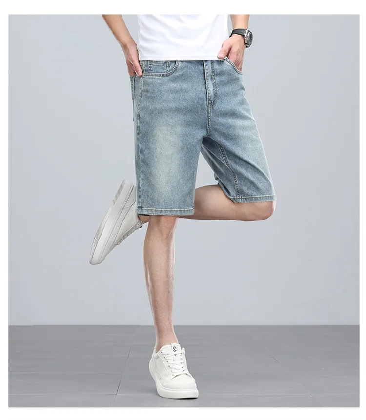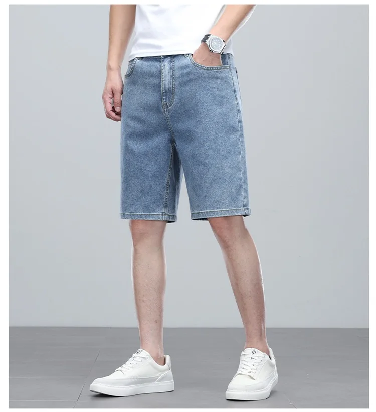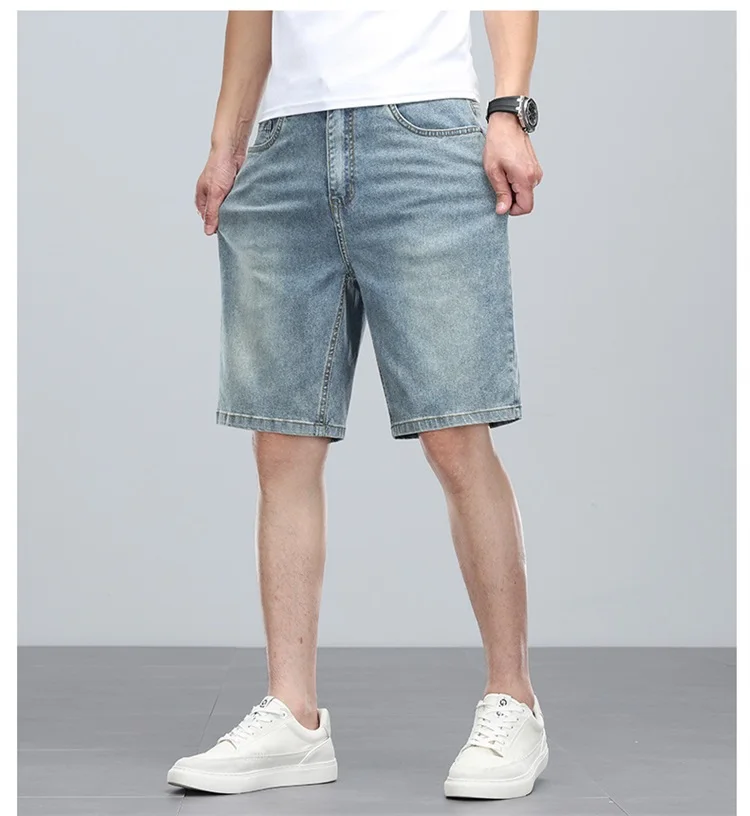 Summer denim mid knee walking shorts men retro man jeans washed water Lyocell breathable lightweight