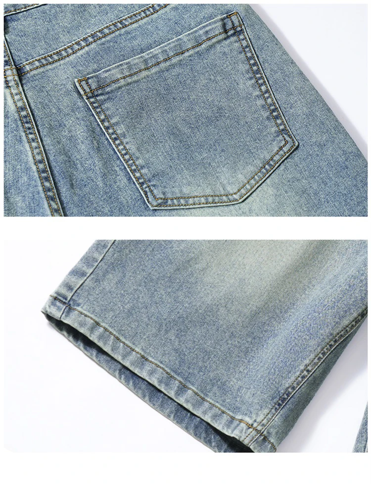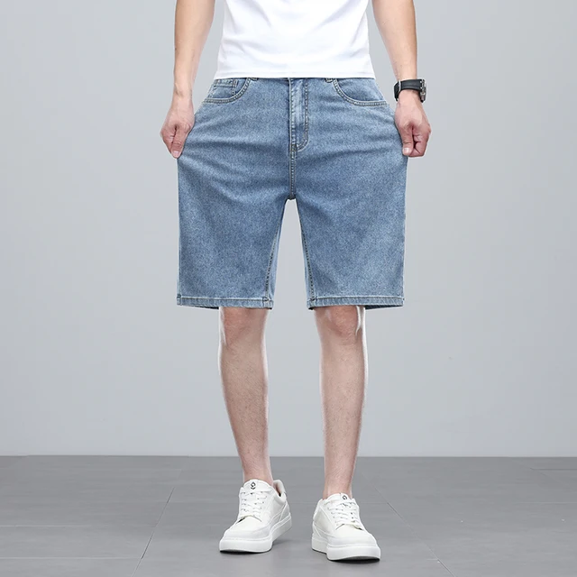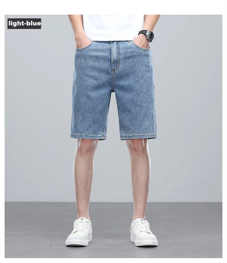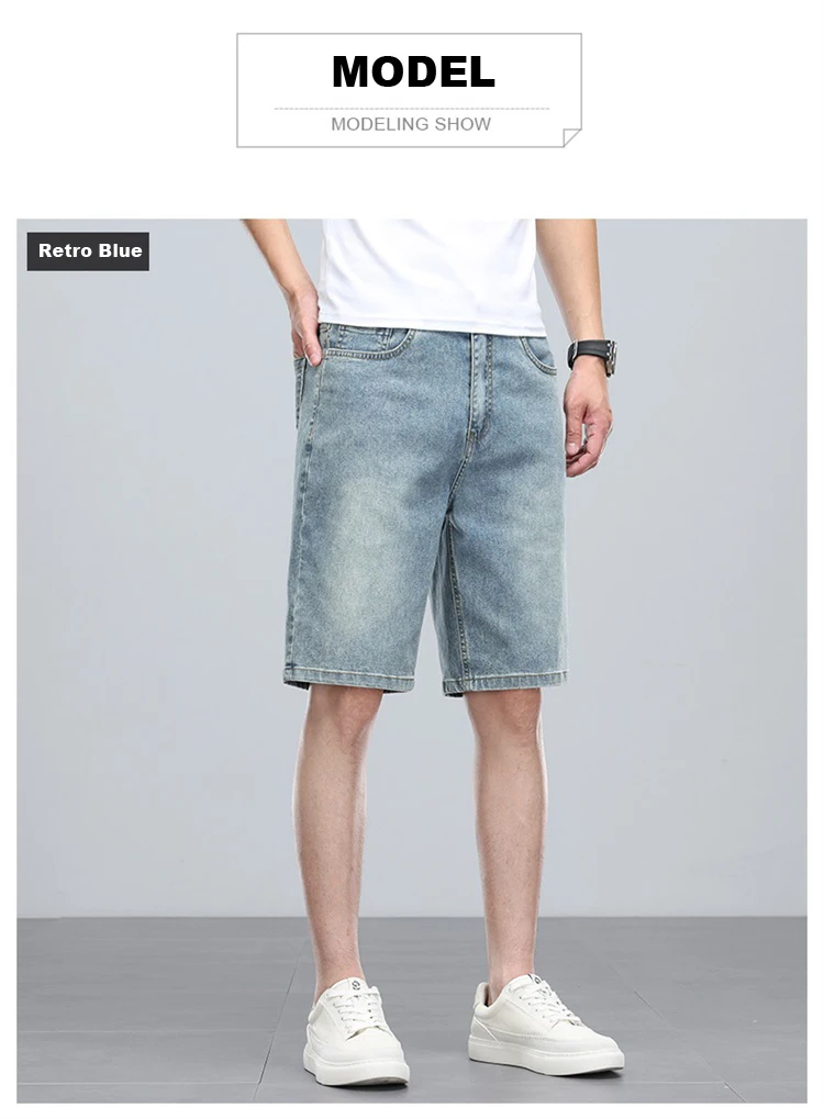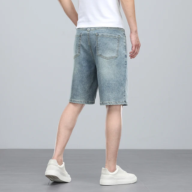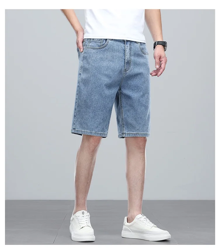 Summer denim mid knee walking shorts men retro man jeans washed water Lyocell breathable lightweight