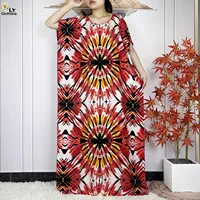 Summer Dubai Fashion Lady Clothing Soft Cotton Tie-dyed Loose Maxi Islam Women Short Sleeve African Abaya