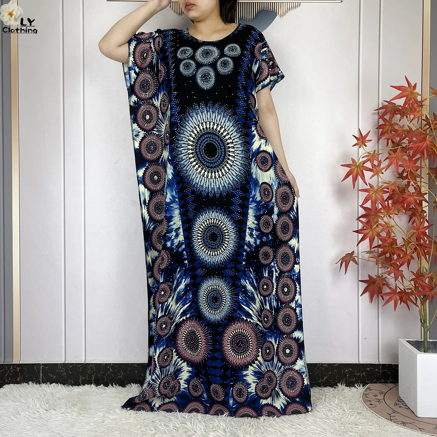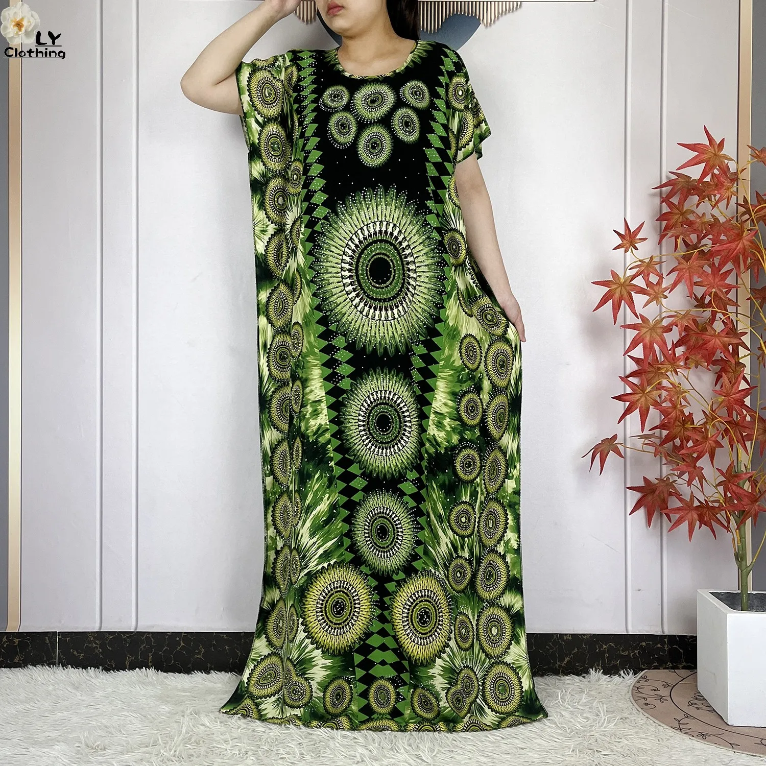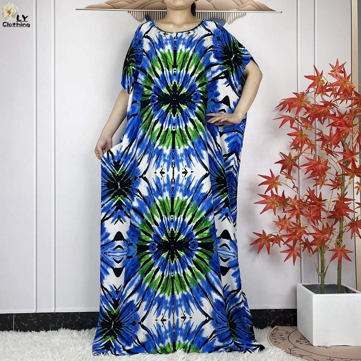 Be the first to review “Summer Dubai Fashion Lady Clothing Soft Cotton Tie-dyed Loose Maxi Islam Women Short Sleeve African Abaya”