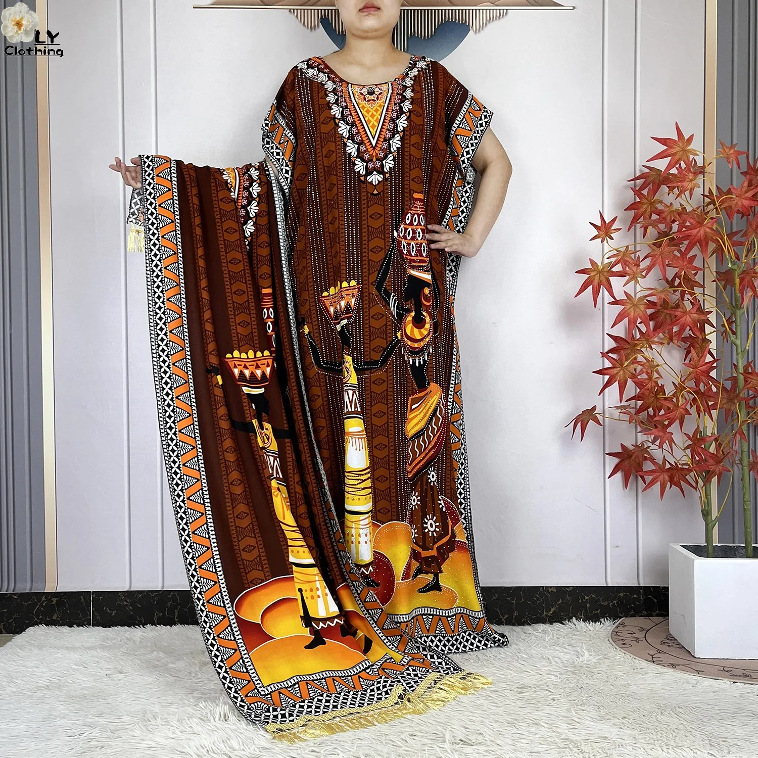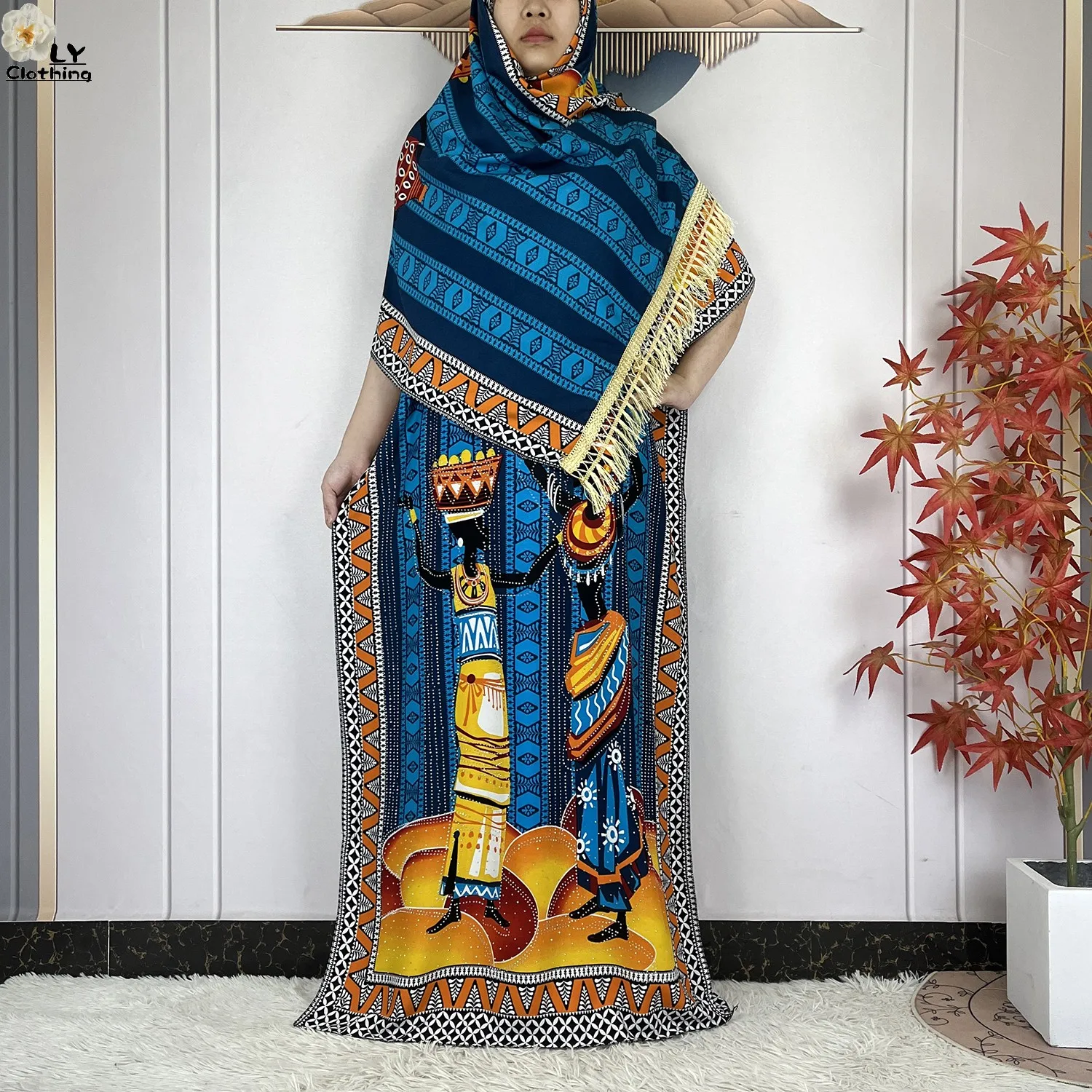 Women Printed Dress With Big Scarf