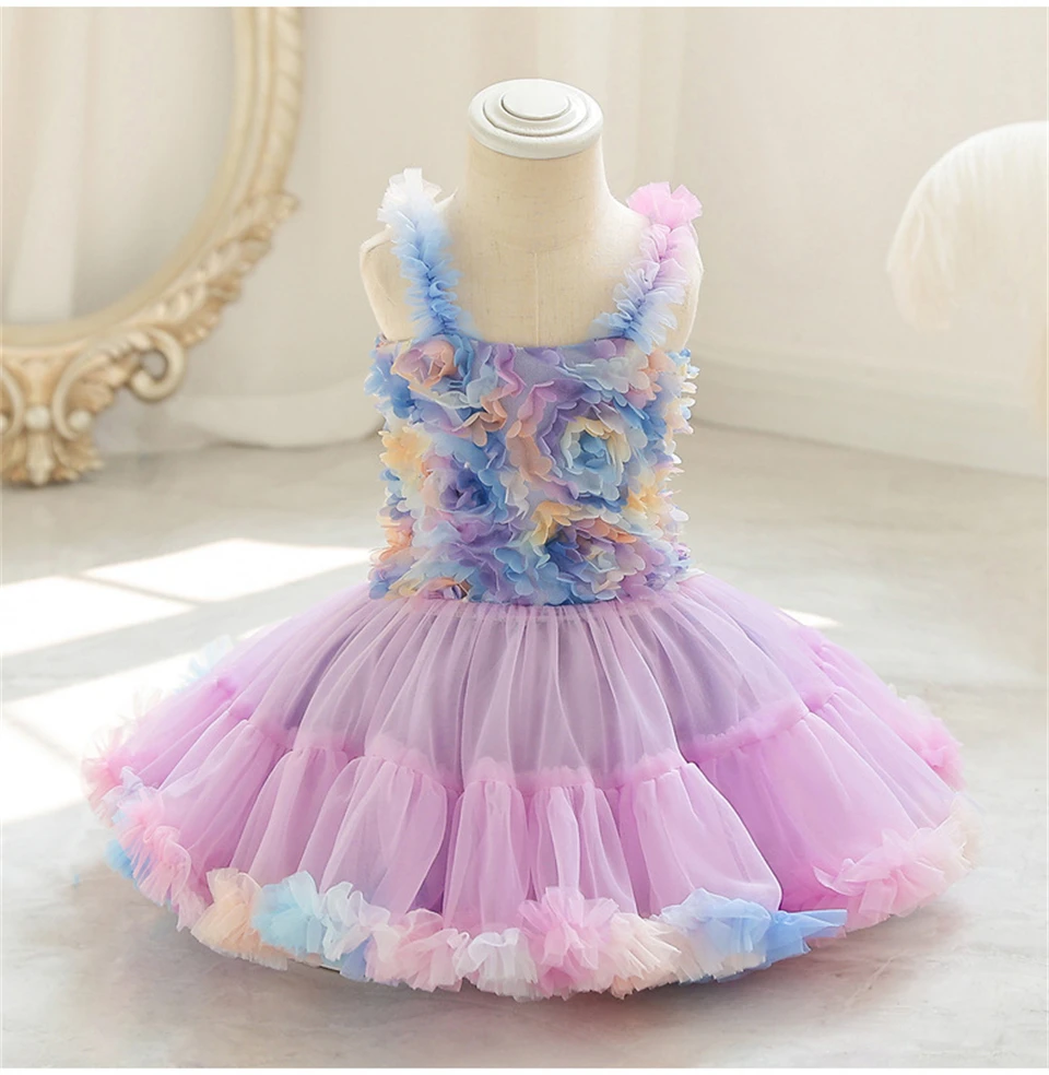 Summer Fancy Girl Rose Flower Ballet Tutu Dress Christmas Toddler Baby Girls Birthday Party Ball Gown Infants Fluffy Tulle Skirt
