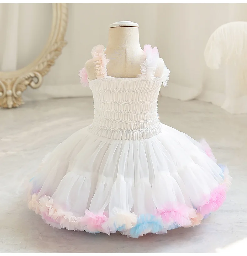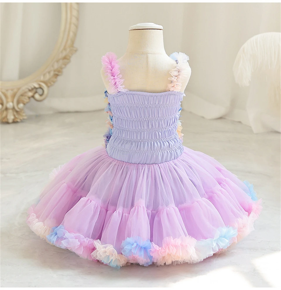 Summer Fancy Girl Rose Flower Ballet Tutu Dress Christmas Toddler Baby Girls Birthday Party Ball Gown Infants Fluffy Tulle Suspender Skirt