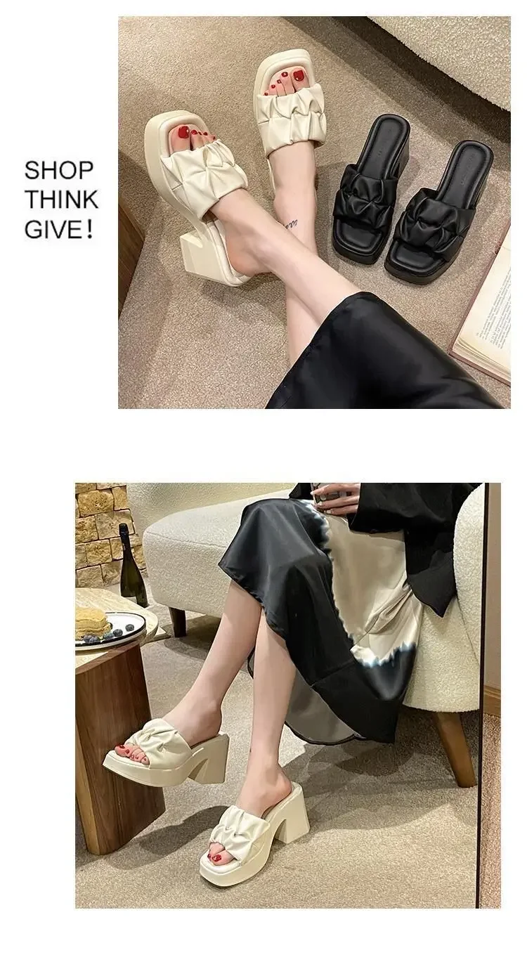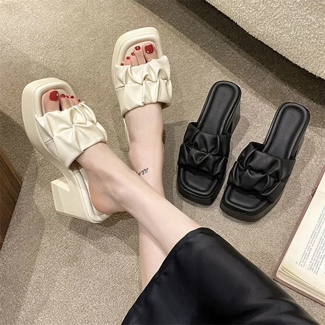Summer Hot Sale Of The Season High Heel Platform Waterproof Anti-Slip Thick Bottom Wear-Resistant Women's Slippers Fashionable P