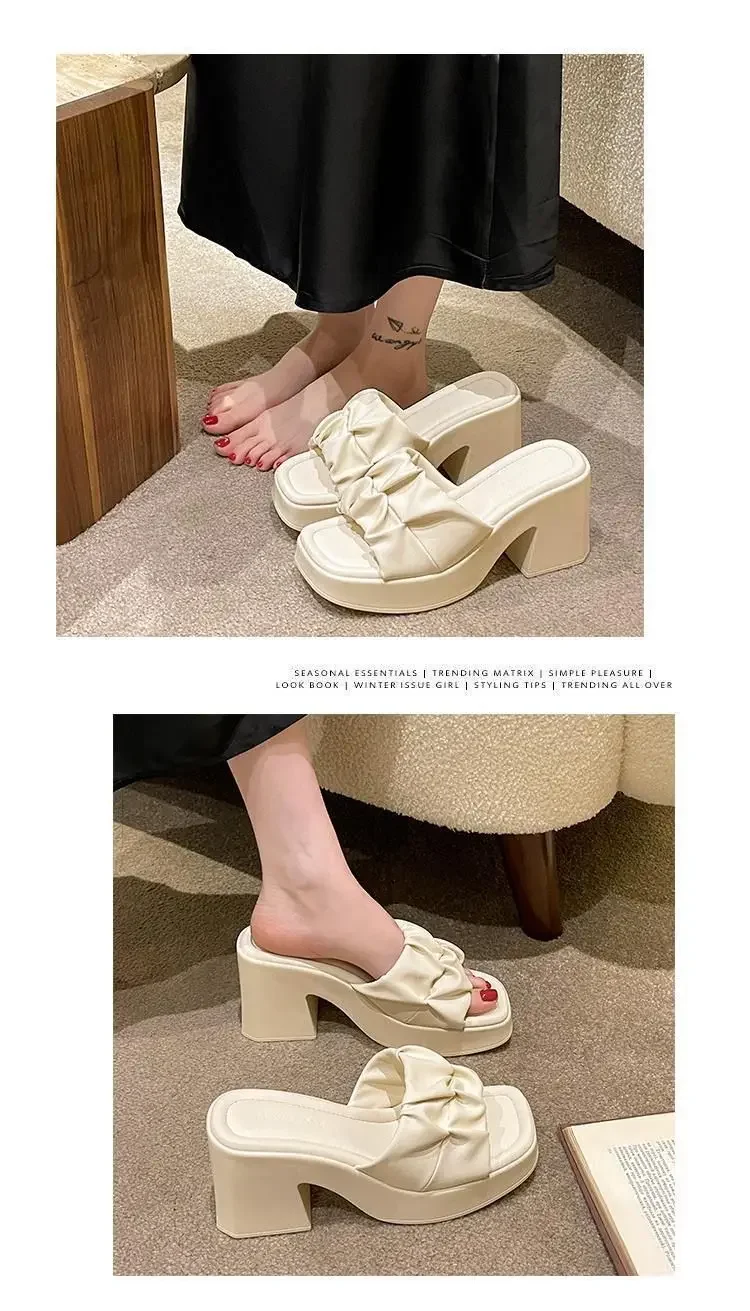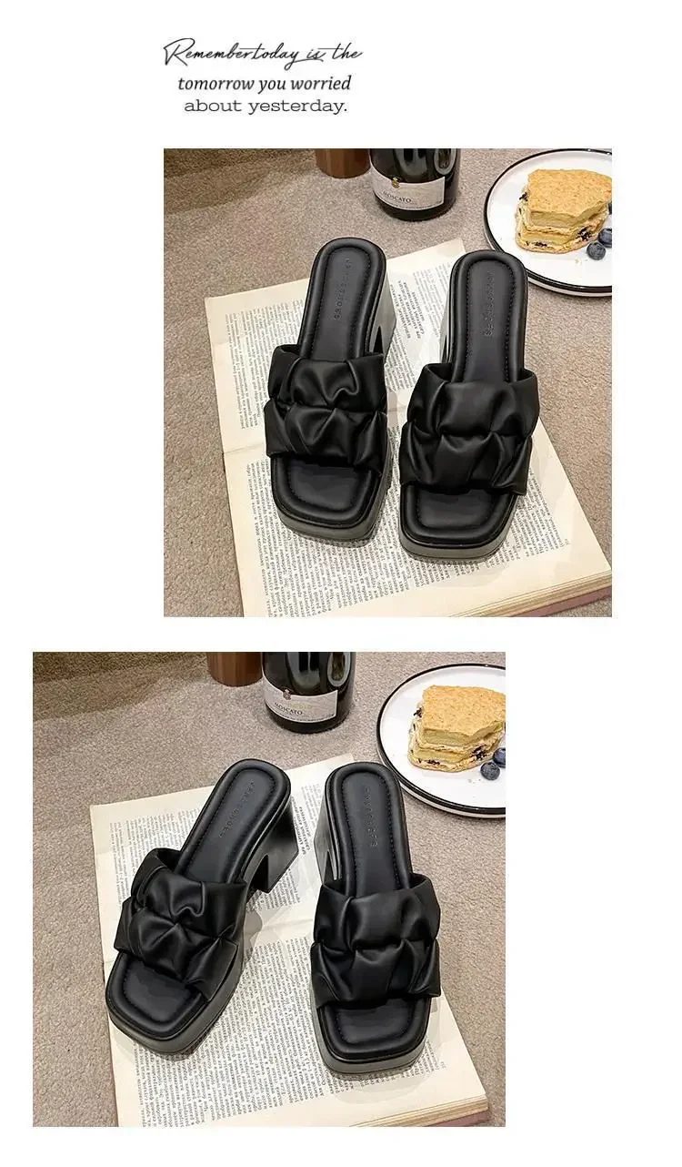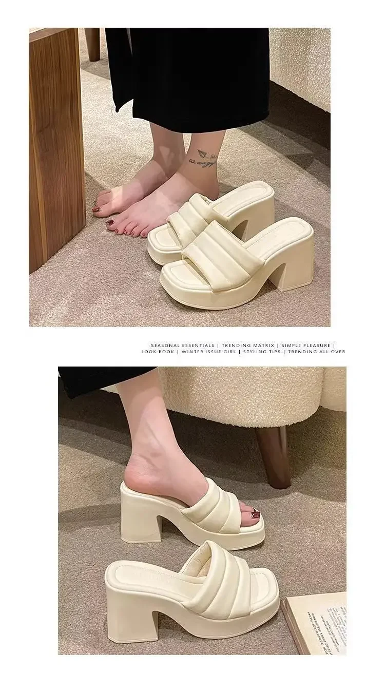 • Thick Bottom Platform : The thick bottom platform design not only adds height but also enhances stability, offering a comfortable and stylish walk.