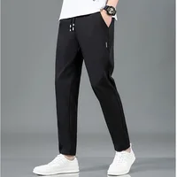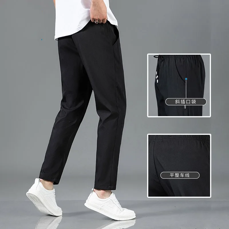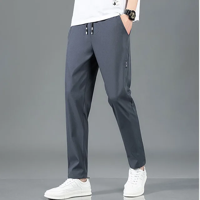 Summer Ice Silk Men’s Pants Black Gray Thin Business Casual Pants Plus Size Outdoor Elastic Breathable