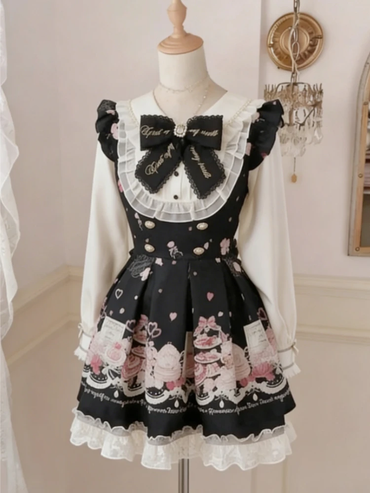 Summer Japanese Style Kawaii Lolita Dress Women Party Vintage Sweet Lace Bow Birthdays Cake Dresses Harajuku
