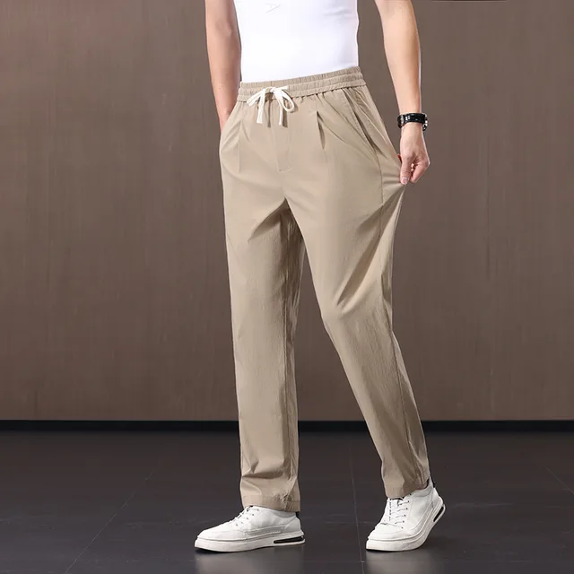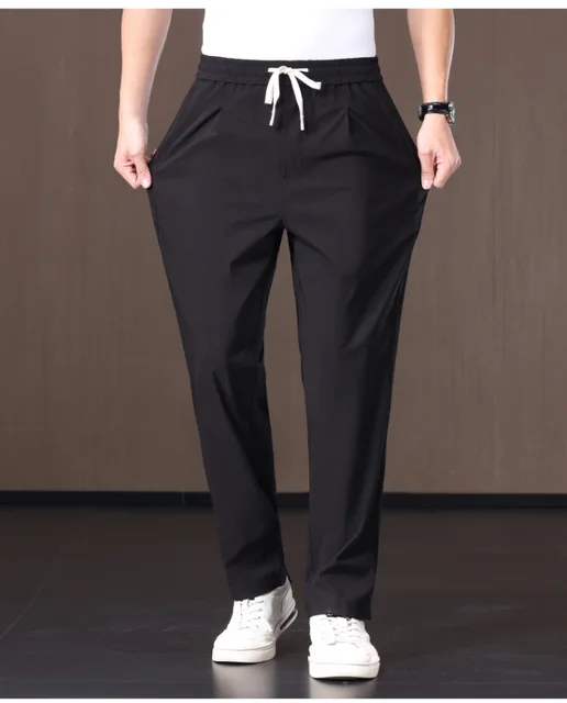 Stretch Solid Black Smart Casual Men's Trousers Office Pants Male Quick Dry Suit Pants New Spring Autumn Korean Straight Pants