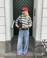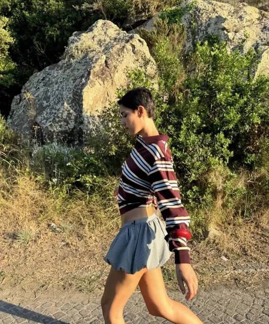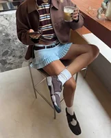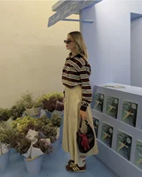 Summer Ladies Polo Shirts Woman Long Sleeve Crop Tops Striped Vintage Clothes Polo Shirts Mujer Streetwear Casual Tops Brown