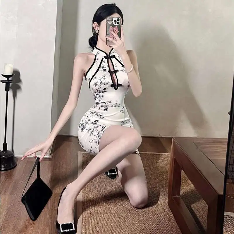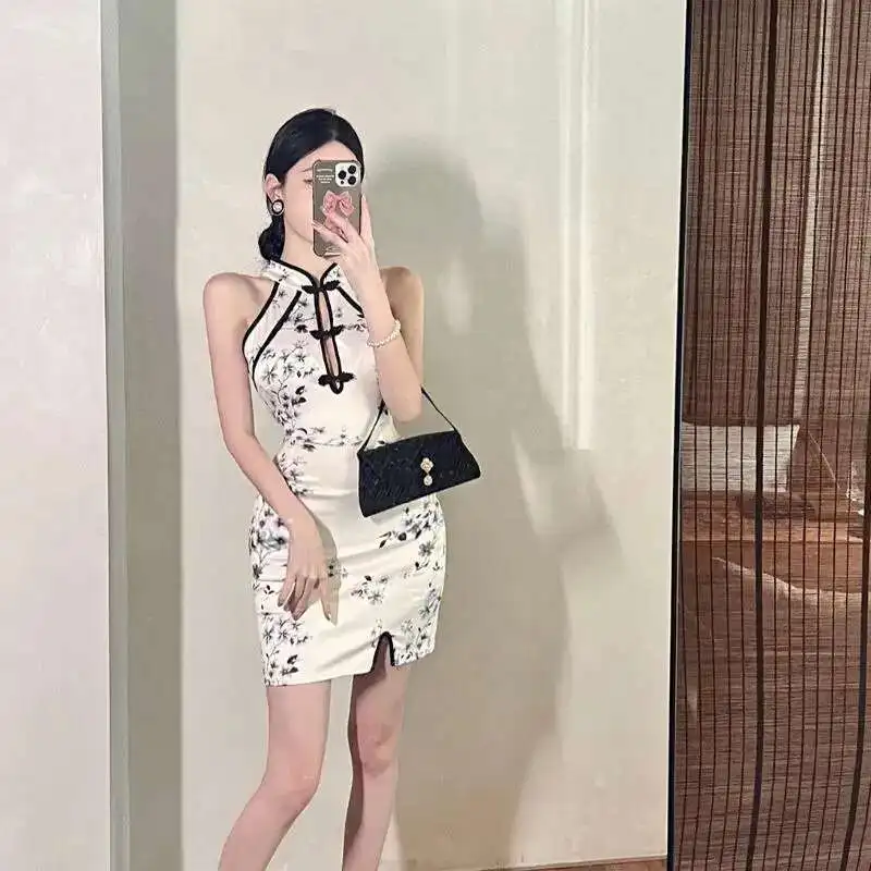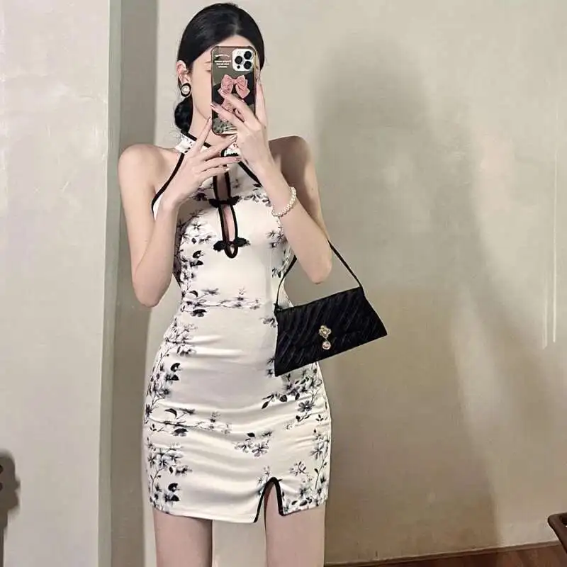 CM.YAYA Women Floral Leopsrd Printed Sleeveless High Side Split Long Maxi Dress 2025 Skew Collar Sexy Birthday Party Dresses
