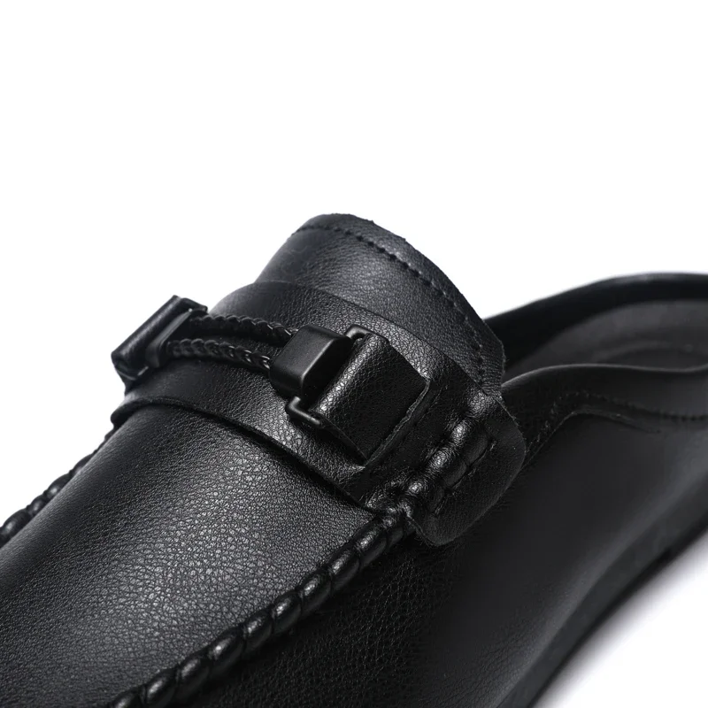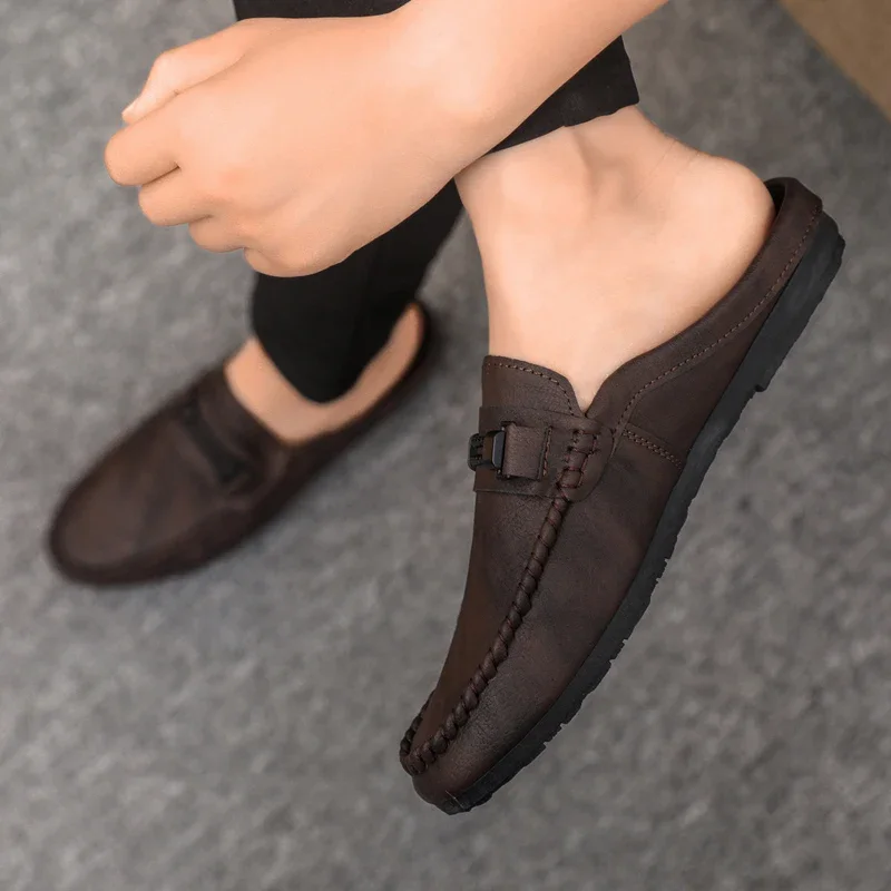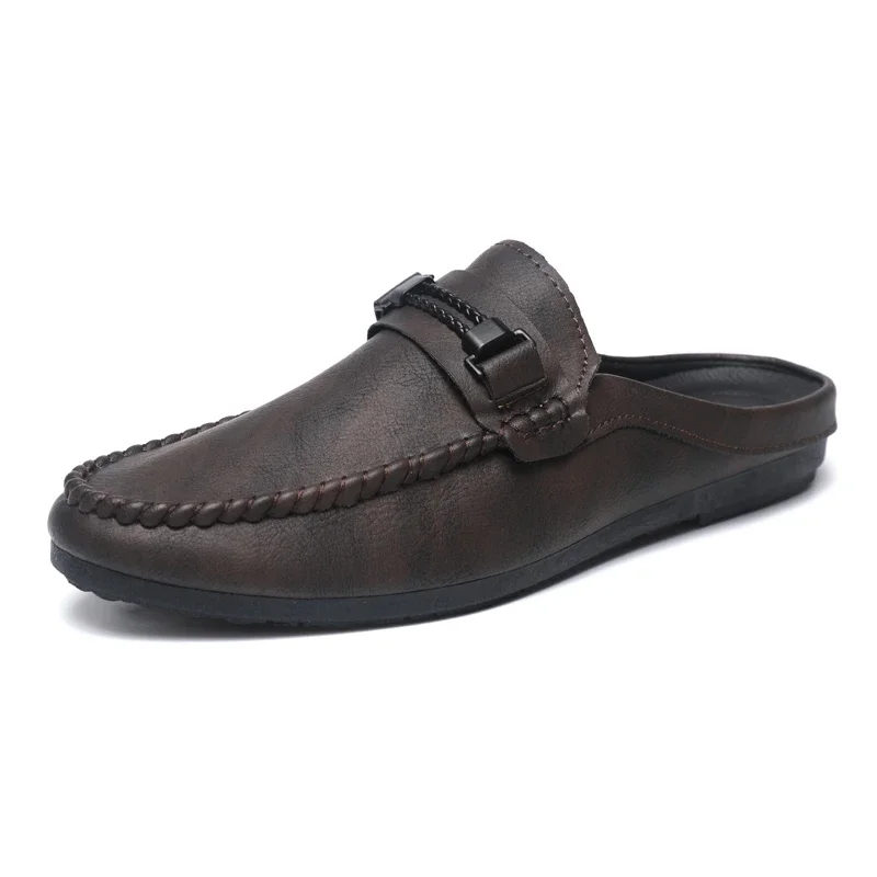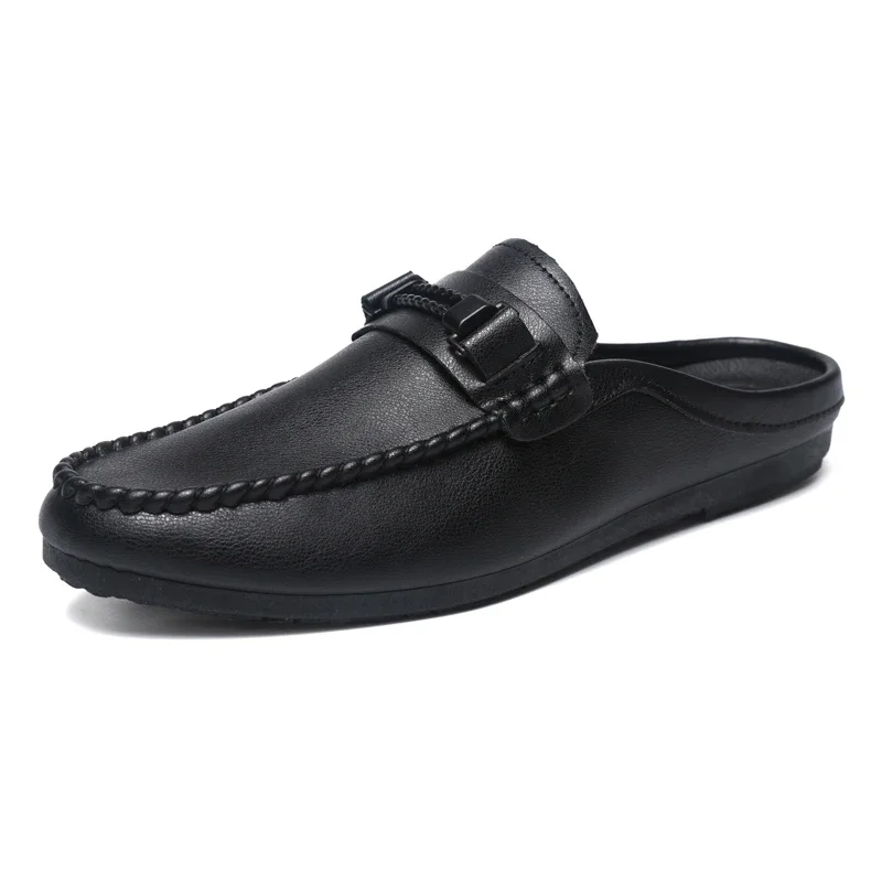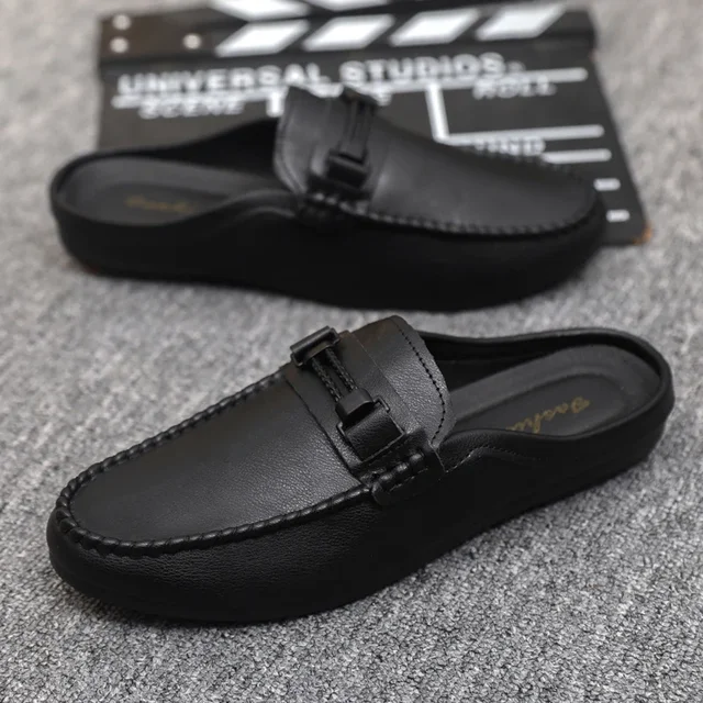 Summer Leather Men Half Slippers Breathable Mens Casual Shoes Slip-on Lazy Driving Shoes Comfortable Walking Loafers Moccasins