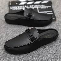Summer Leather Men Half Slippers Breathable Mens Casual Shoes Slip-on Lazy Driving Shoes Comfortable