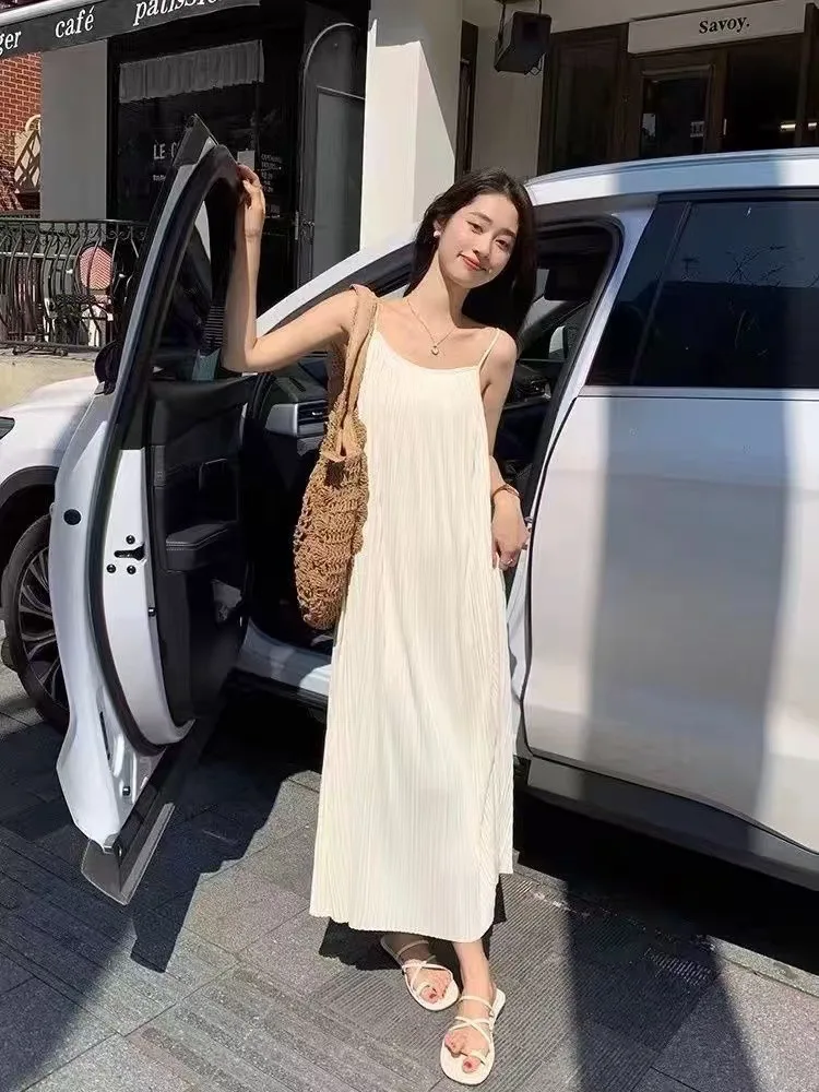 Embrace elegance with this French-style long dress, featuring a slimming silhouette and a chic, casual vibe.