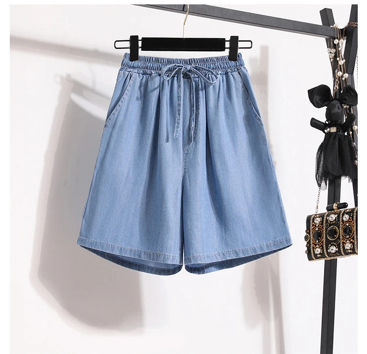 Summer Loose Plus Size Shorts Woman Clothing Casual Wide Leg Bermudas Denim Shorts Women Lace Up Jean