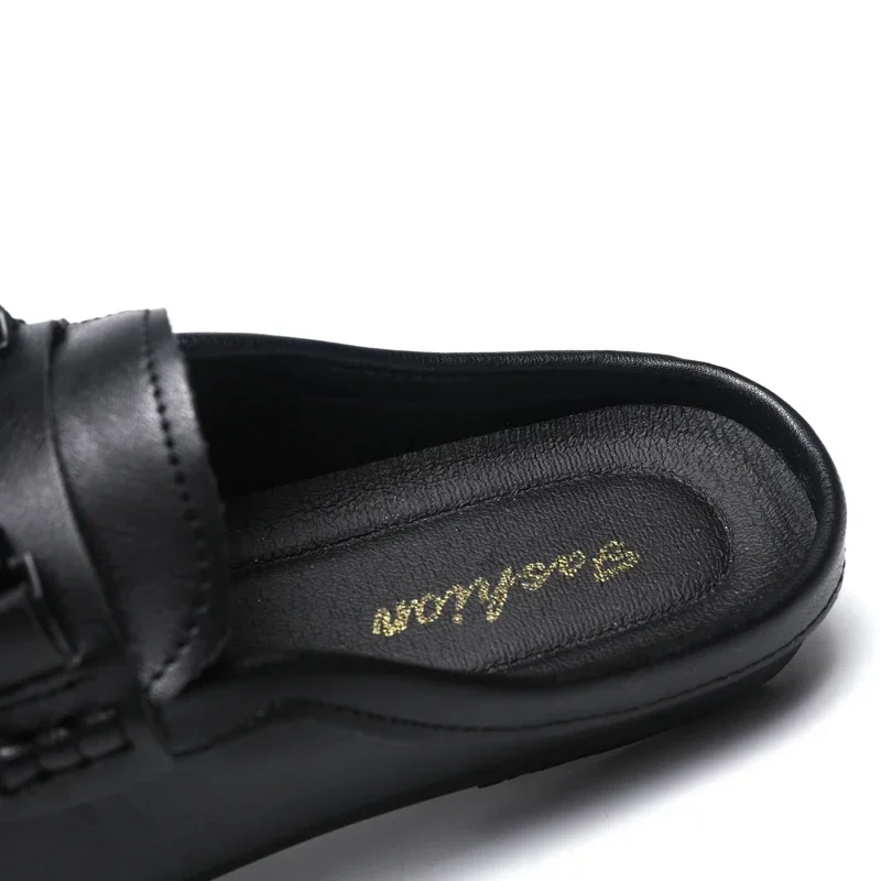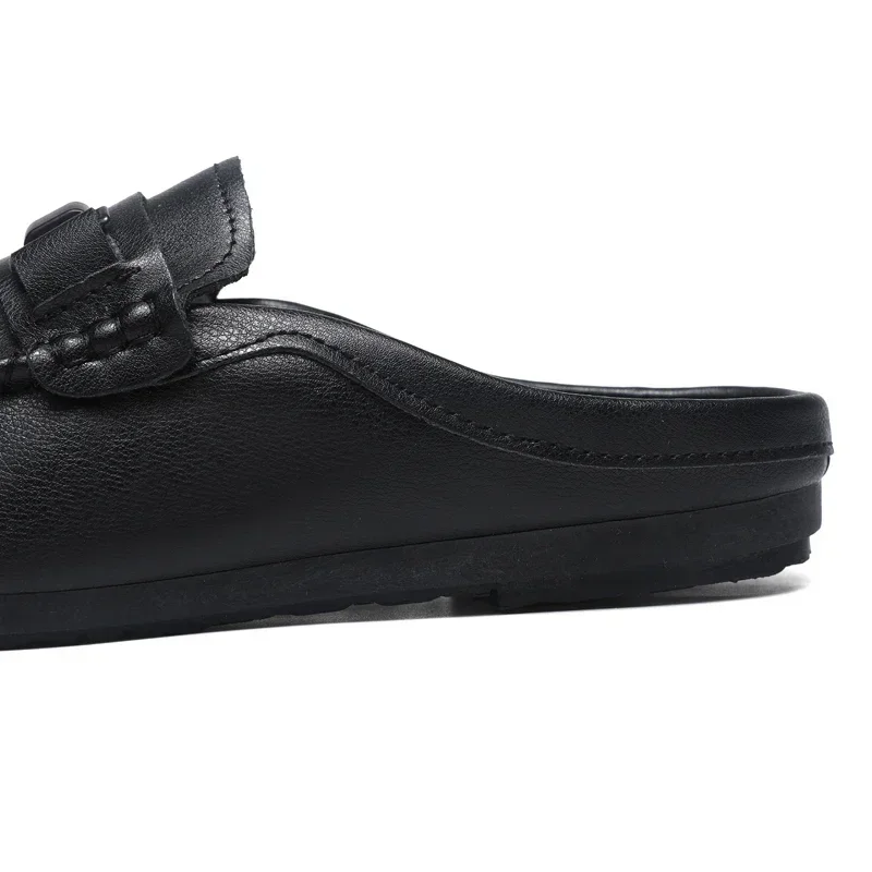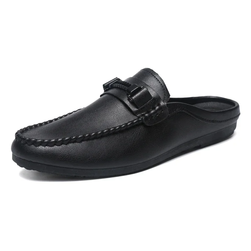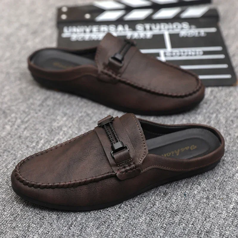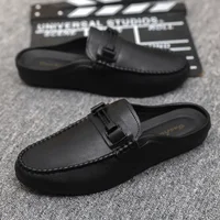 Summer Men Leather Half Slippers Comfortable Mens Loafers Breathable Casual Shoes Slip on Lazy Shoes