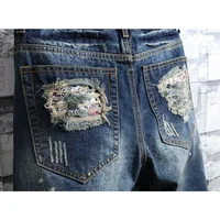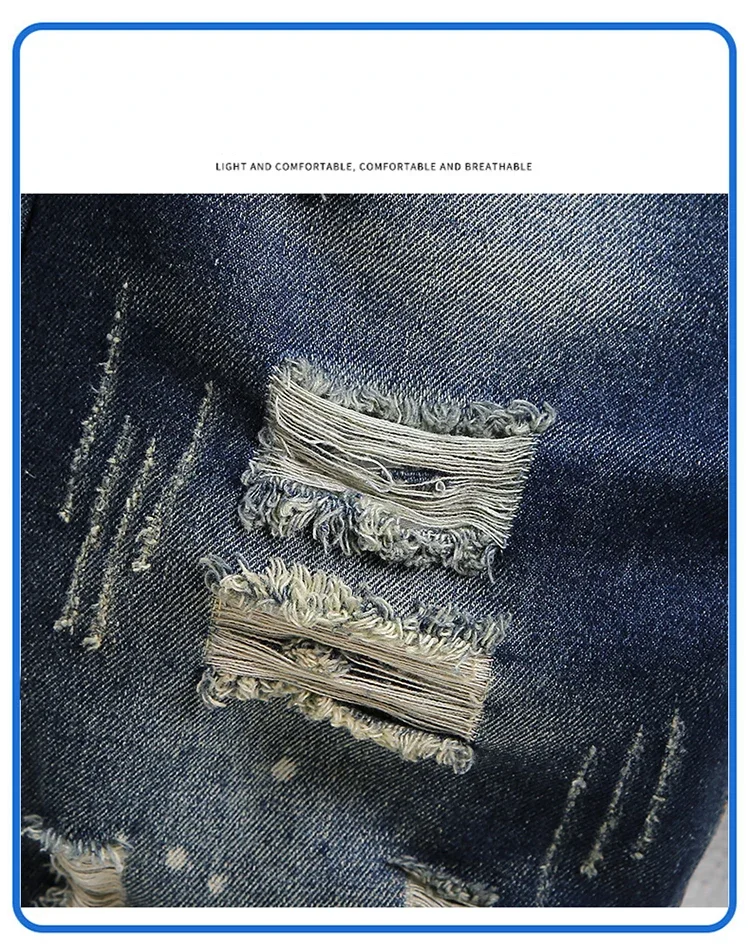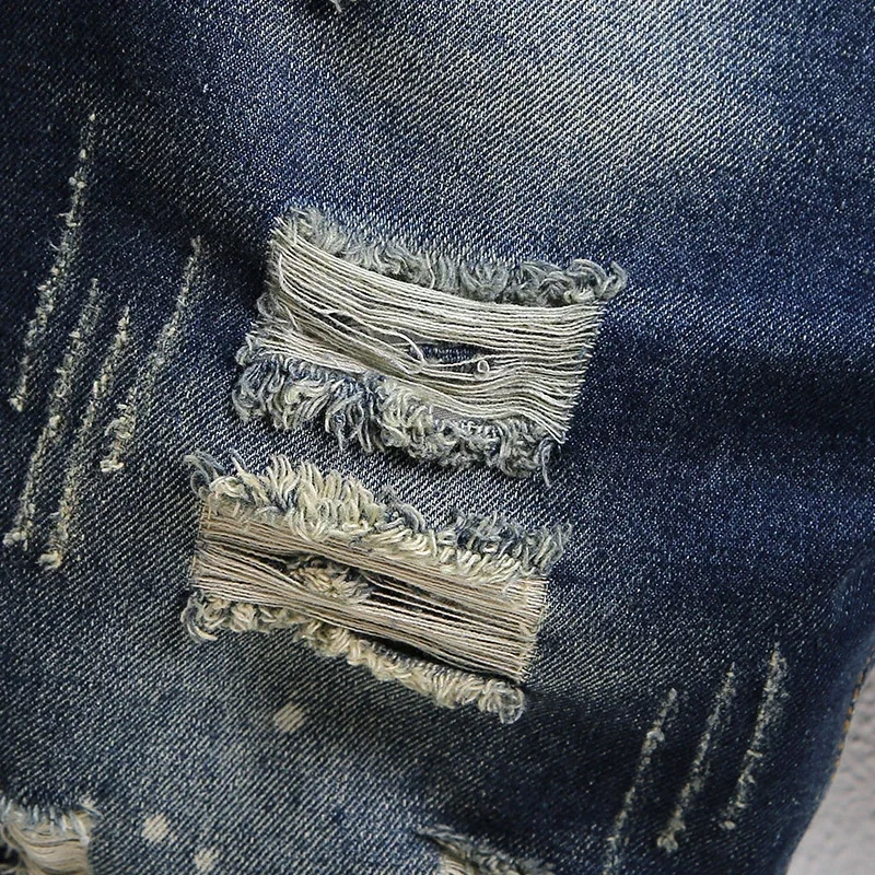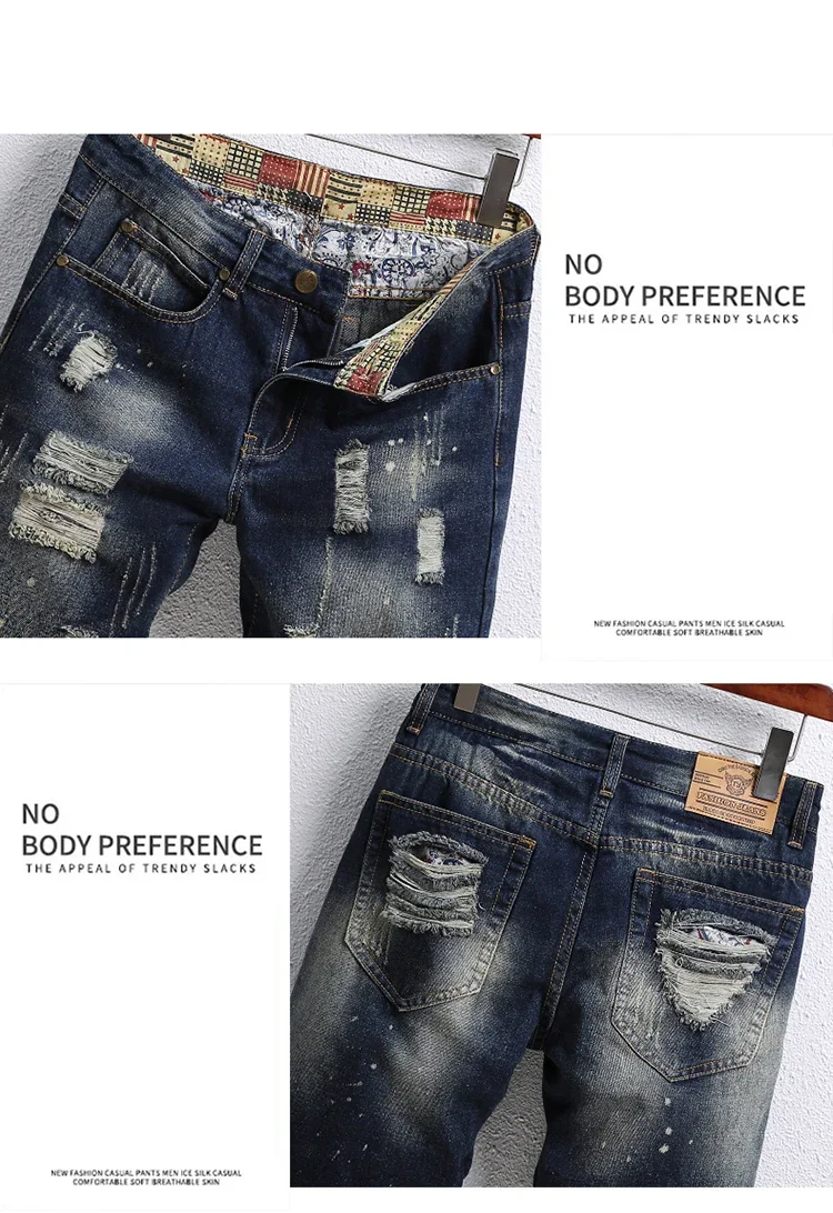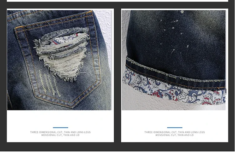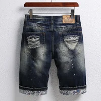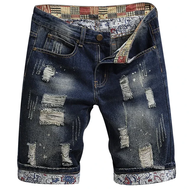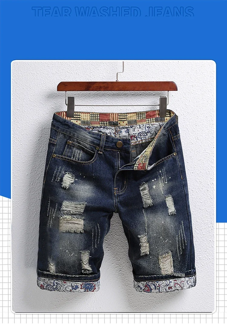 Summer Men's Knee-length Ripped Denim Shorts Hip-hop High Street Slim Straight Short Jeans Male Retro Fashion Casual Shorts