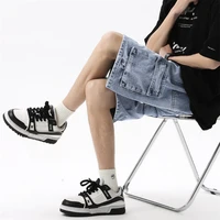 New Summer Vintage Washed Men Denim Shorts Casual Fashion Street Wear Ripped Hole Patches Distressed Male Straight Jeans Shorts