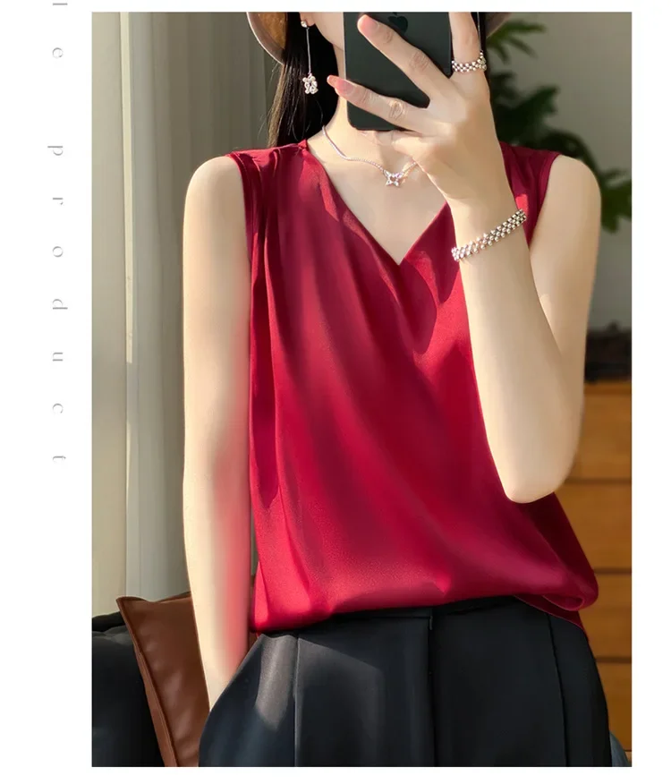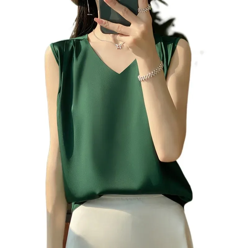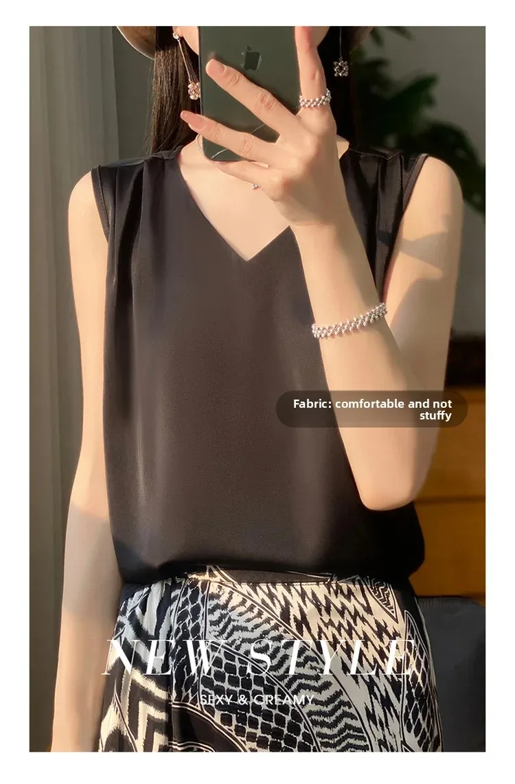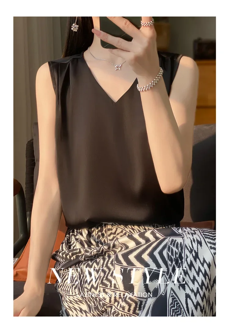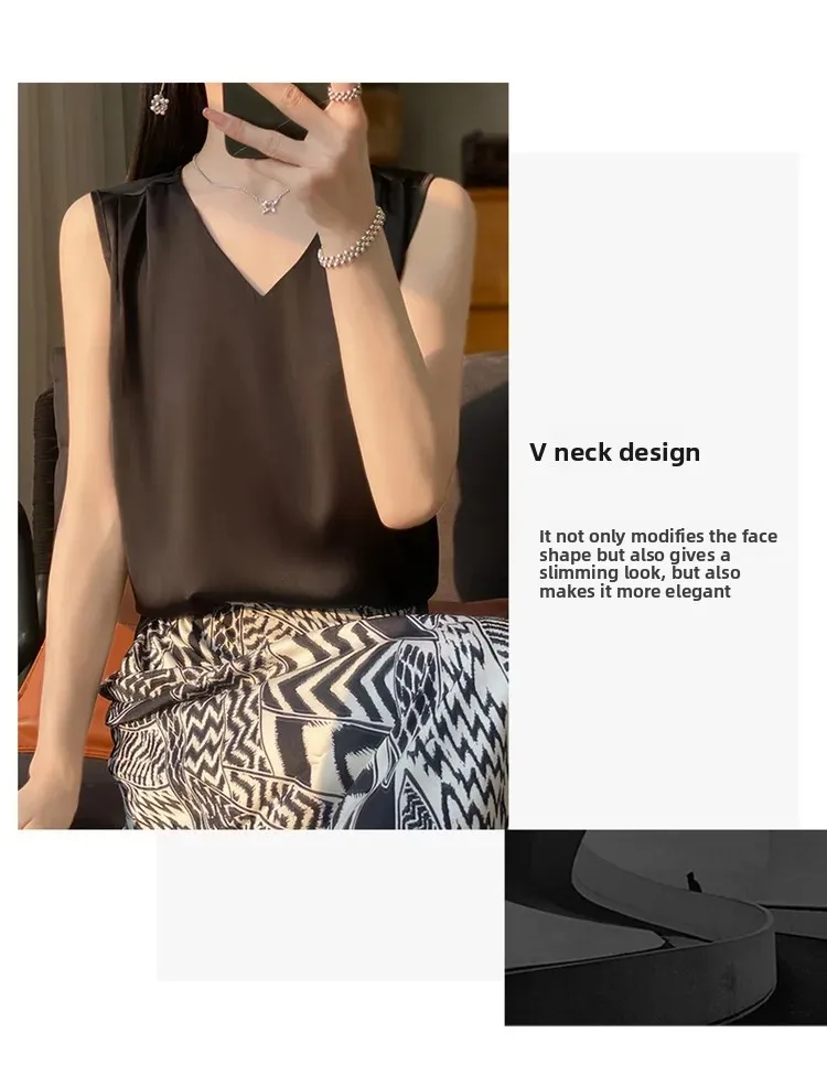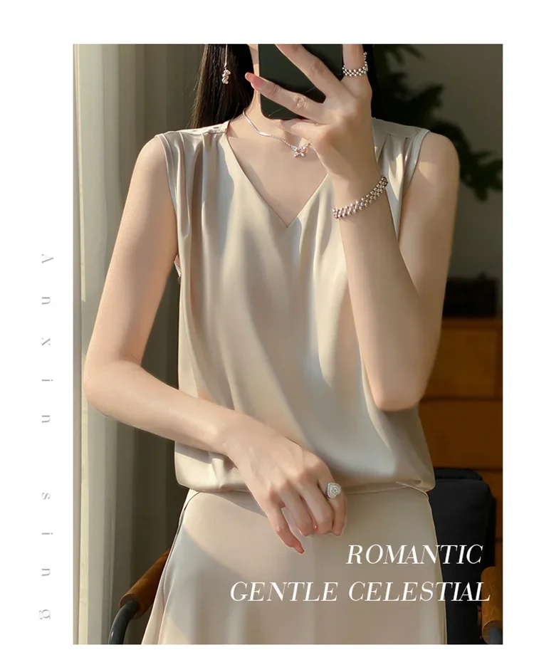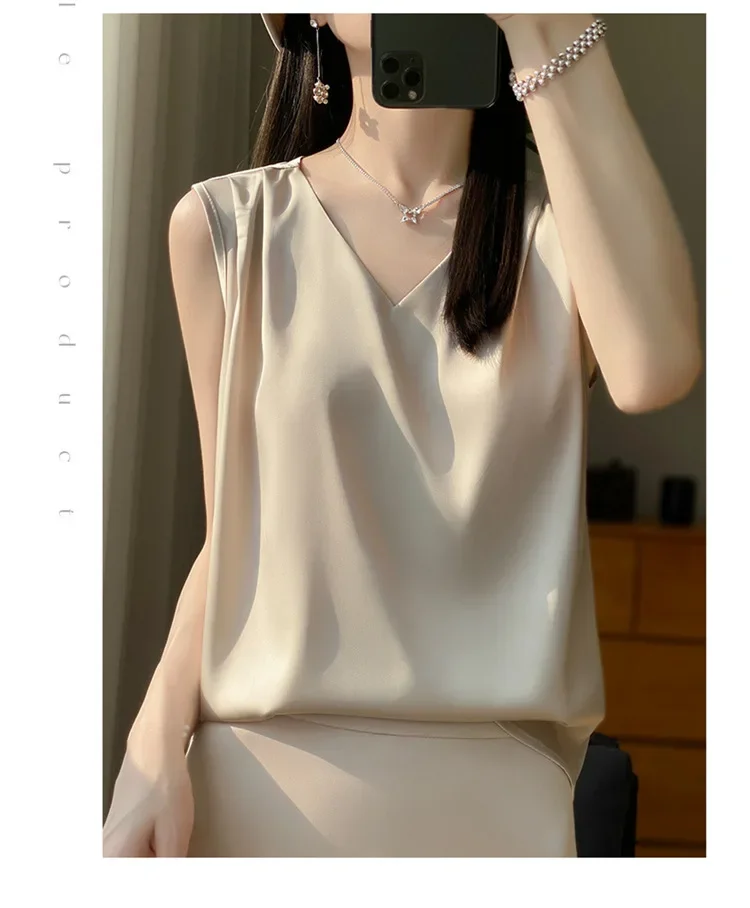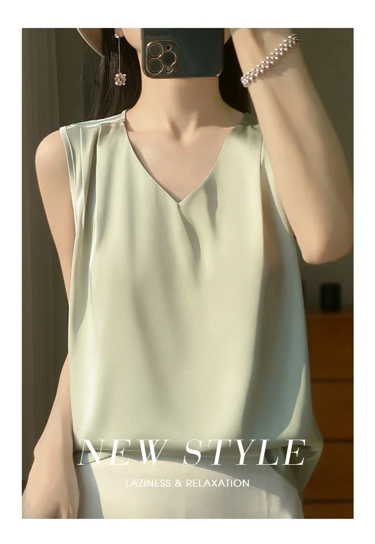 Summer New Acetate Satin Strap Vest Women’s Inner V-neck Top Outer Loose plus Size Women’s