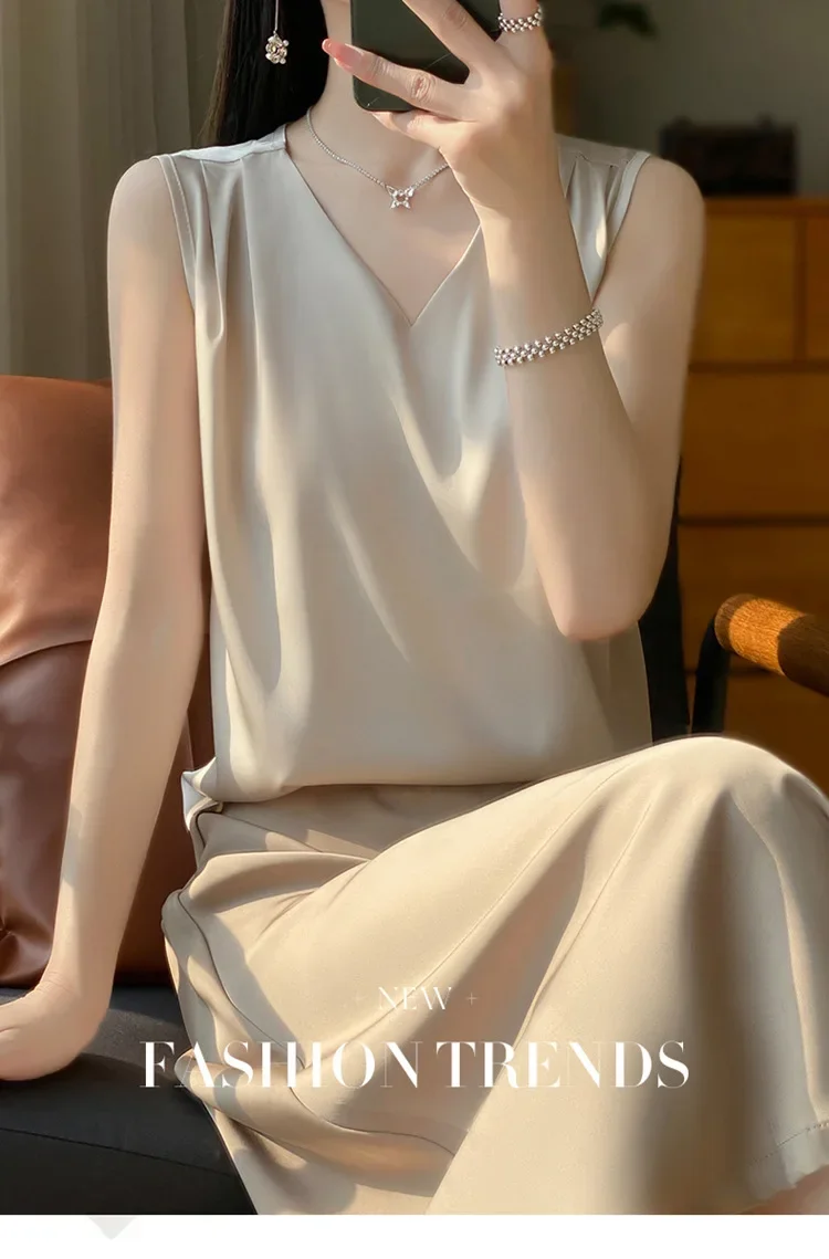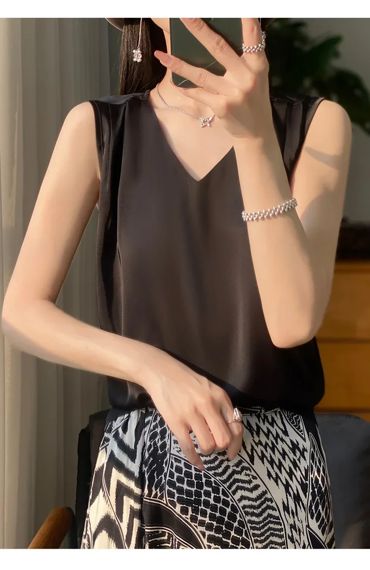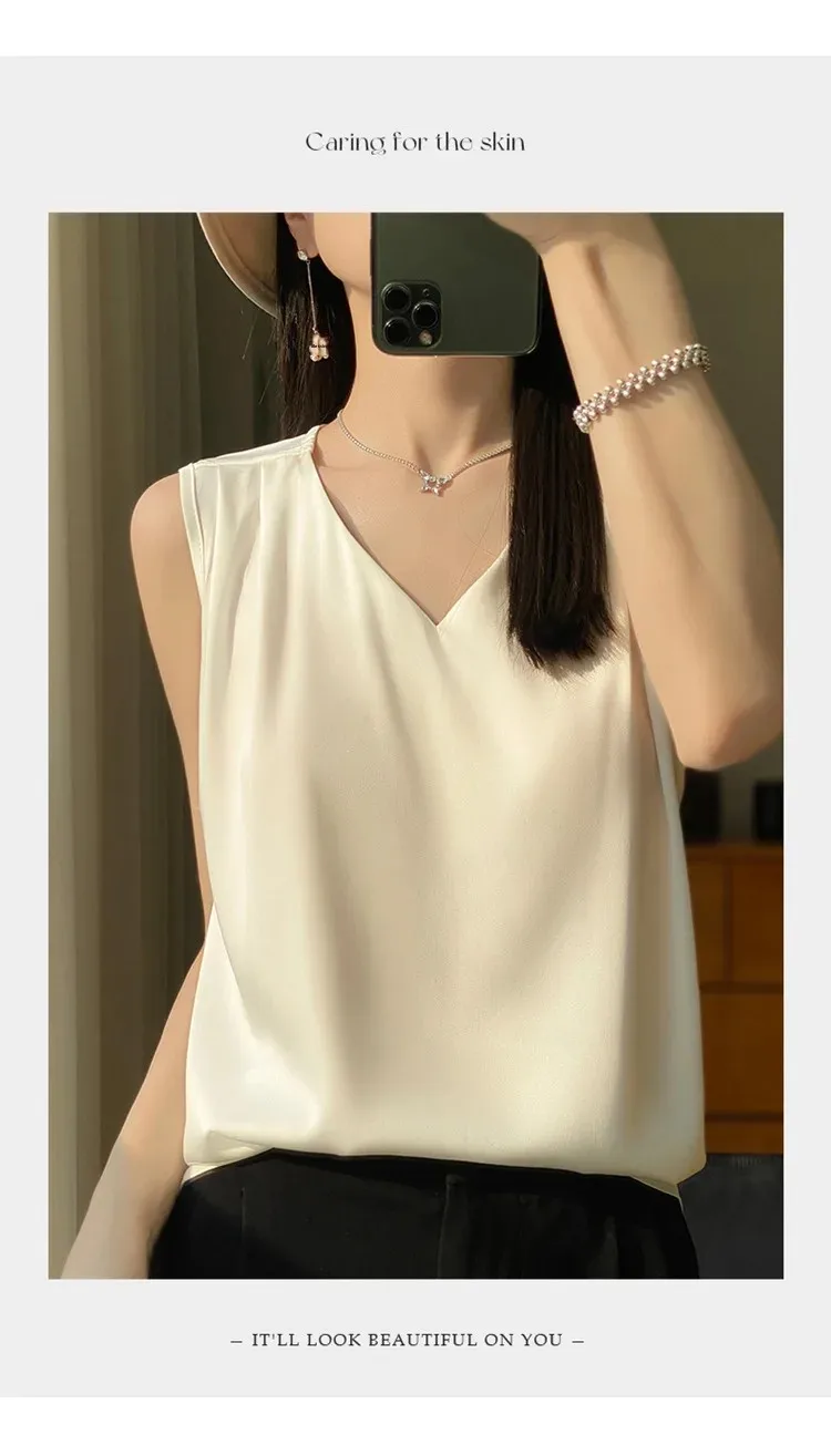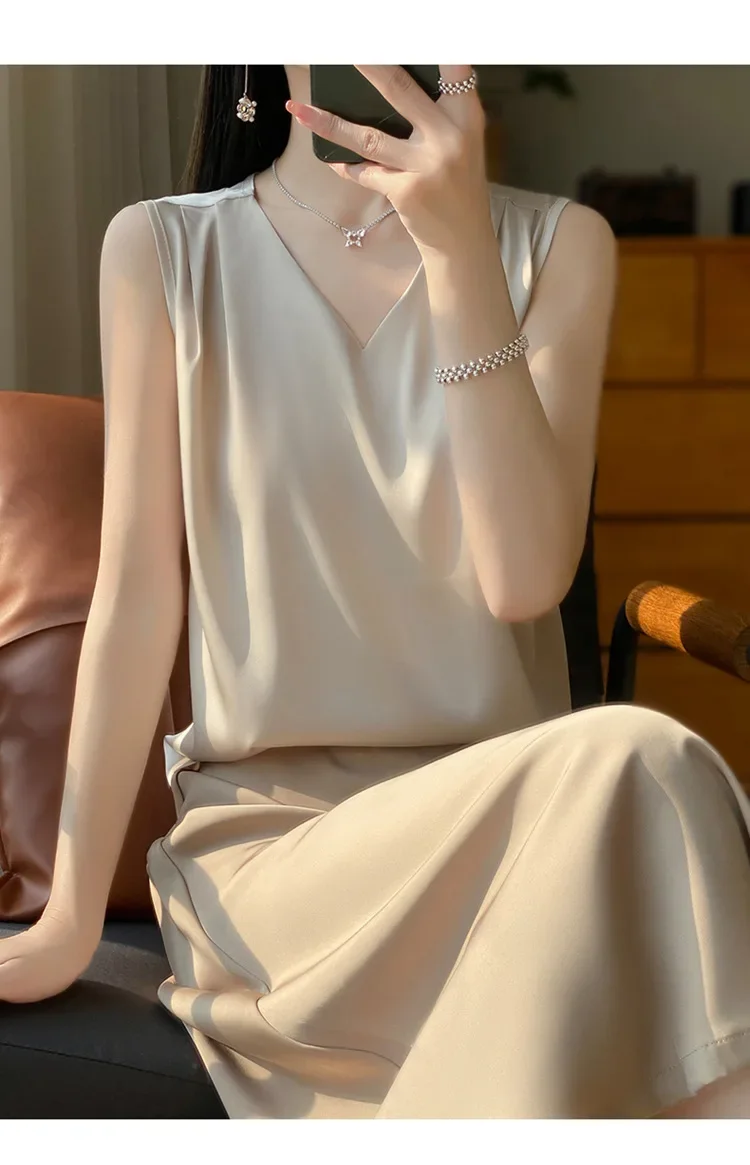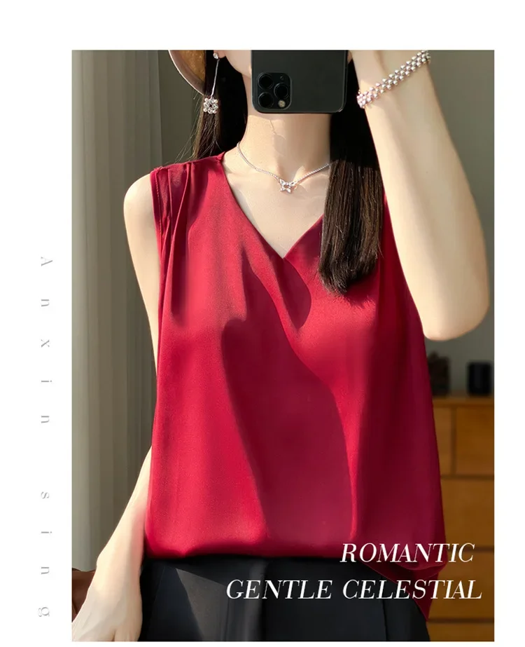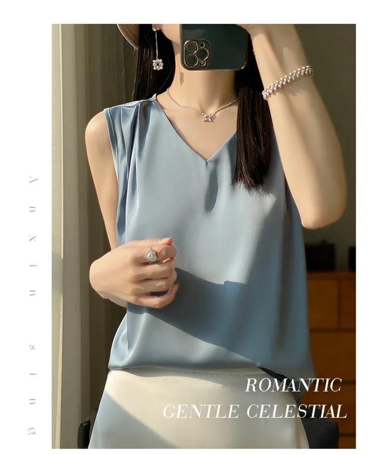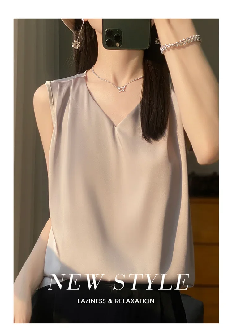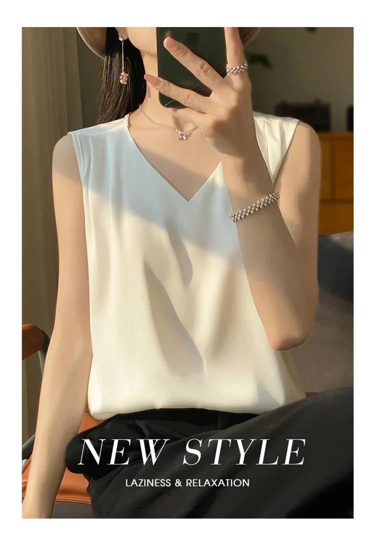 Summer New Acetate Satin Strap Vest Women’s Inner V-neck Top Outer Loose plus Size Women’s