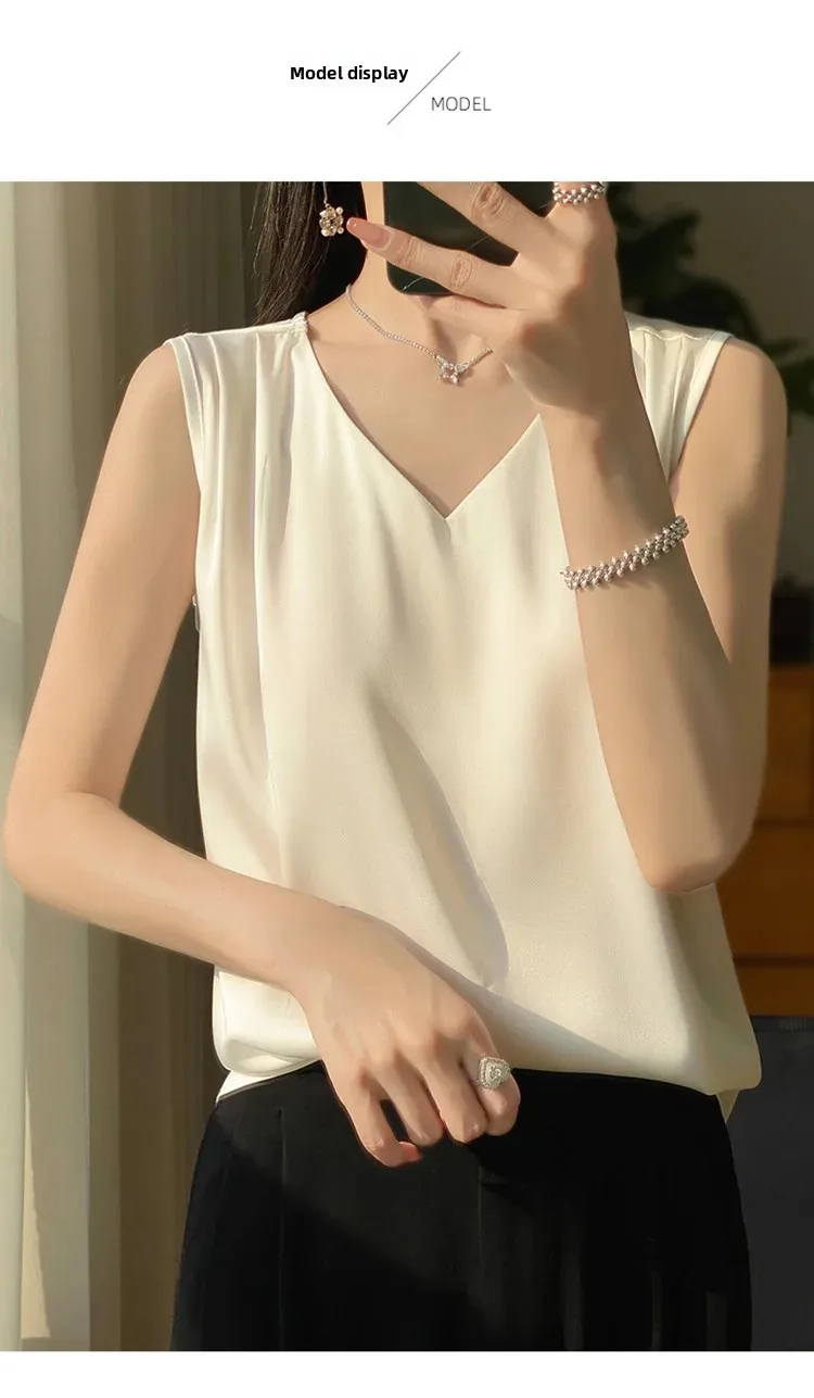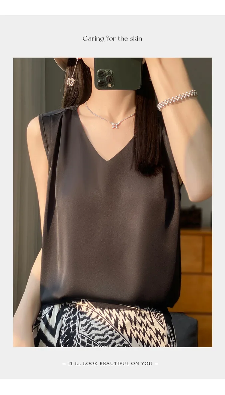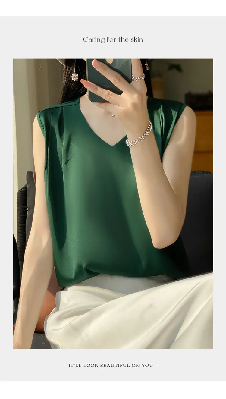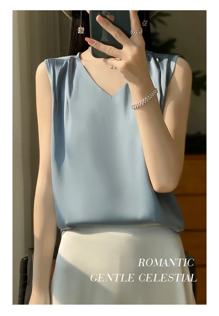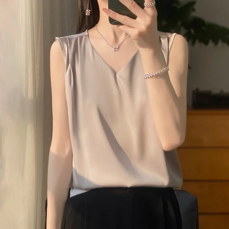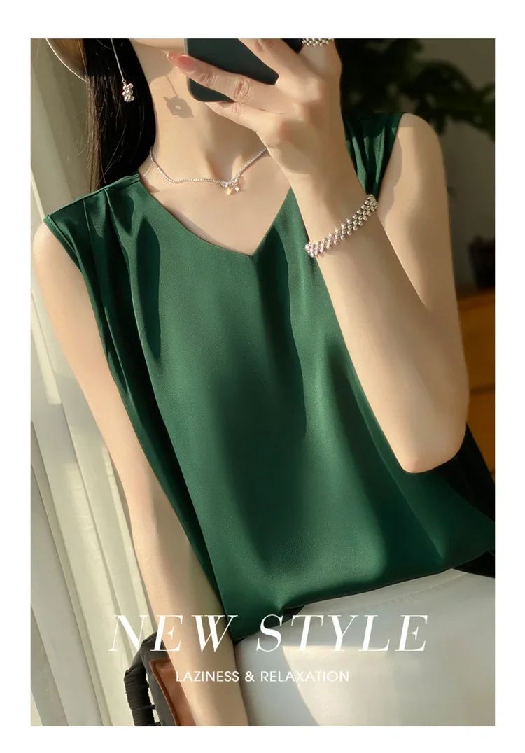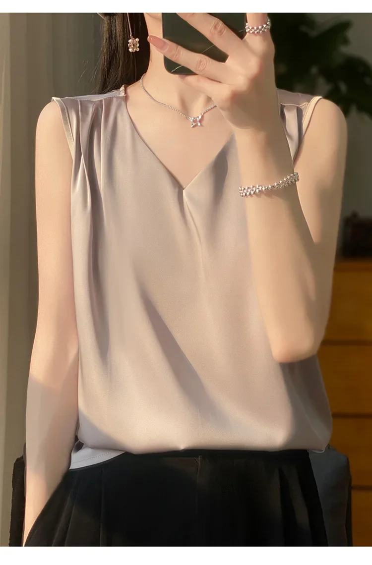 Summer New Acetate Satin Strap Vest Women’s Inner V-neck Top Outer Loose plus Size Women’s