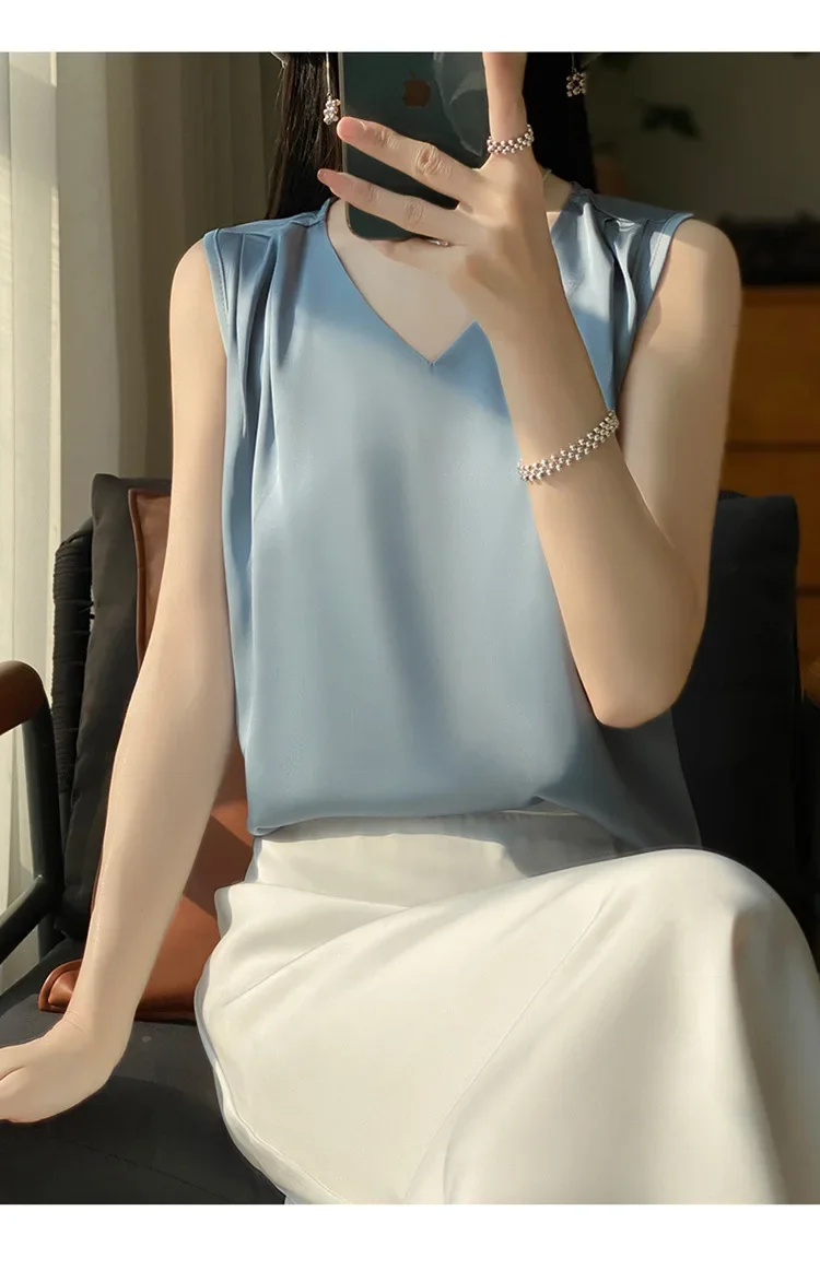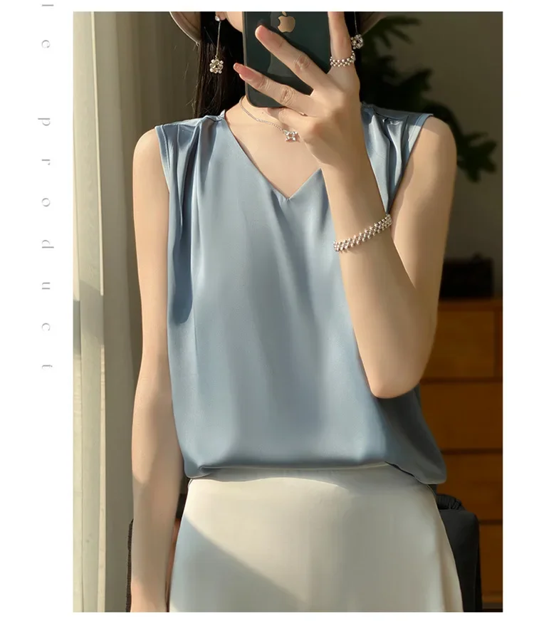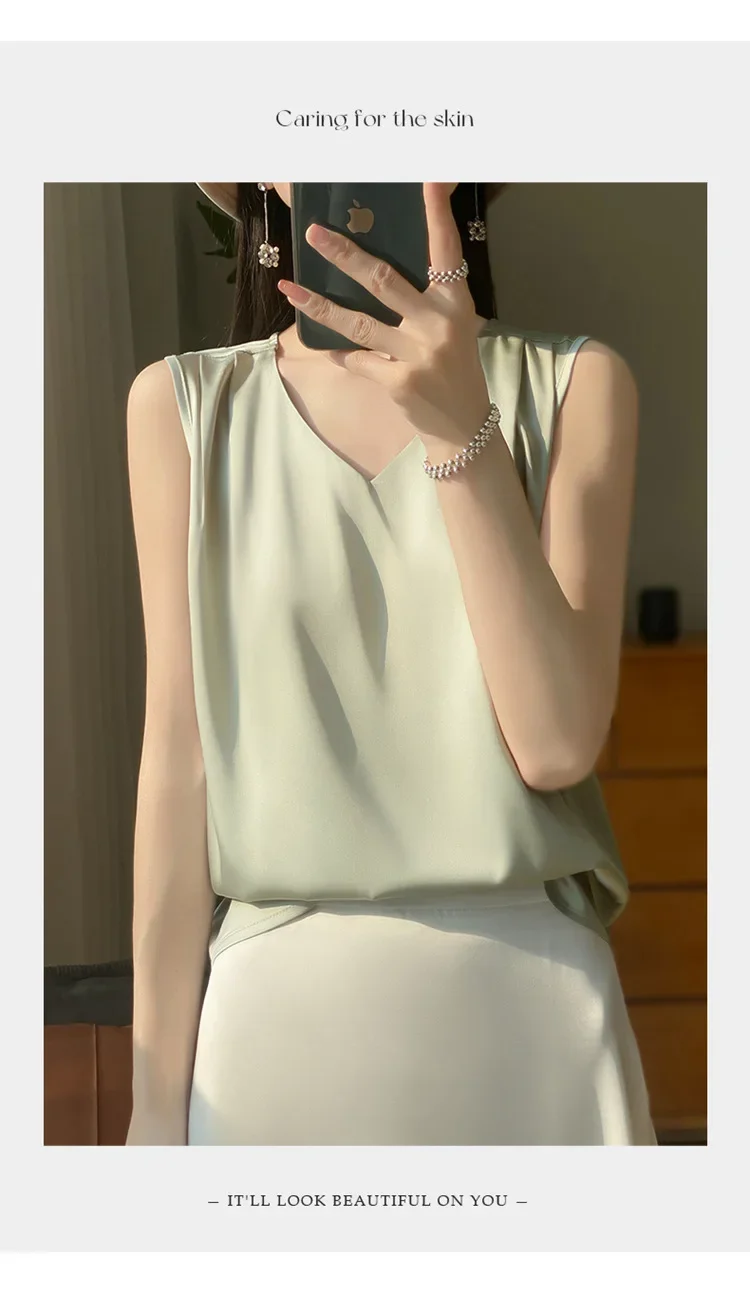• Acetic Acid Satin Material : Crafted from acetic acid satin, this top offers a smooth, luxurious feel against your skin, perfect for warm summer days.