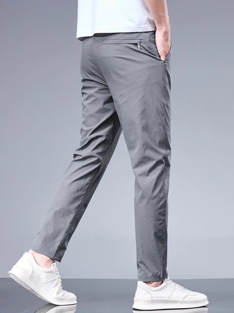 Summer New Business Ice Silk Pants Straight Elastic Waist Black Gray Trousers Breathable Simple Male