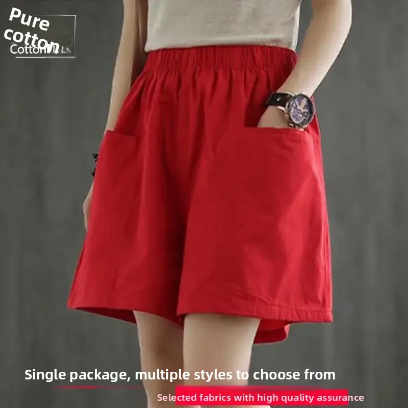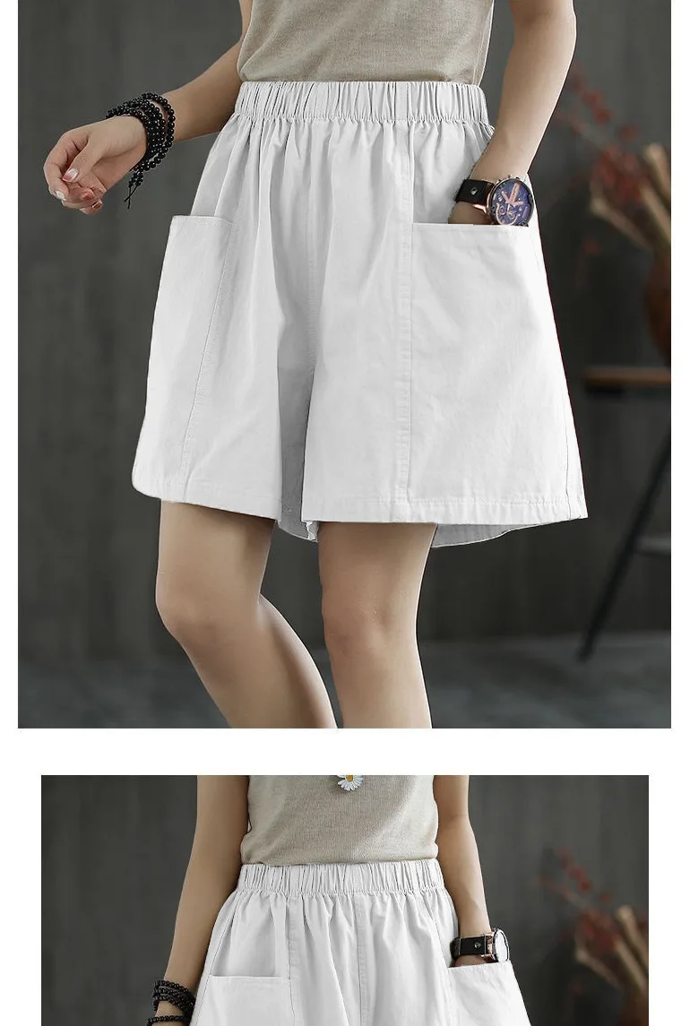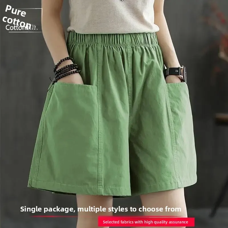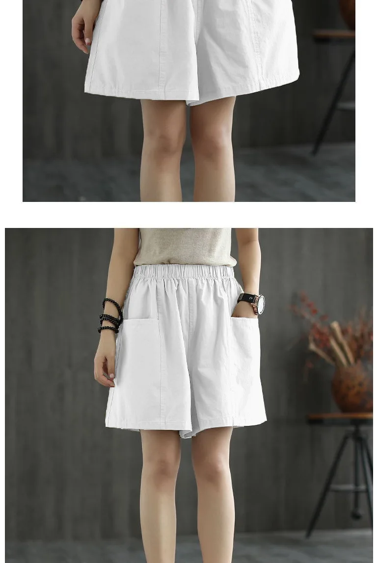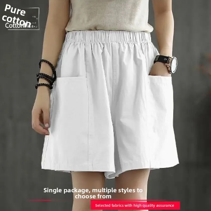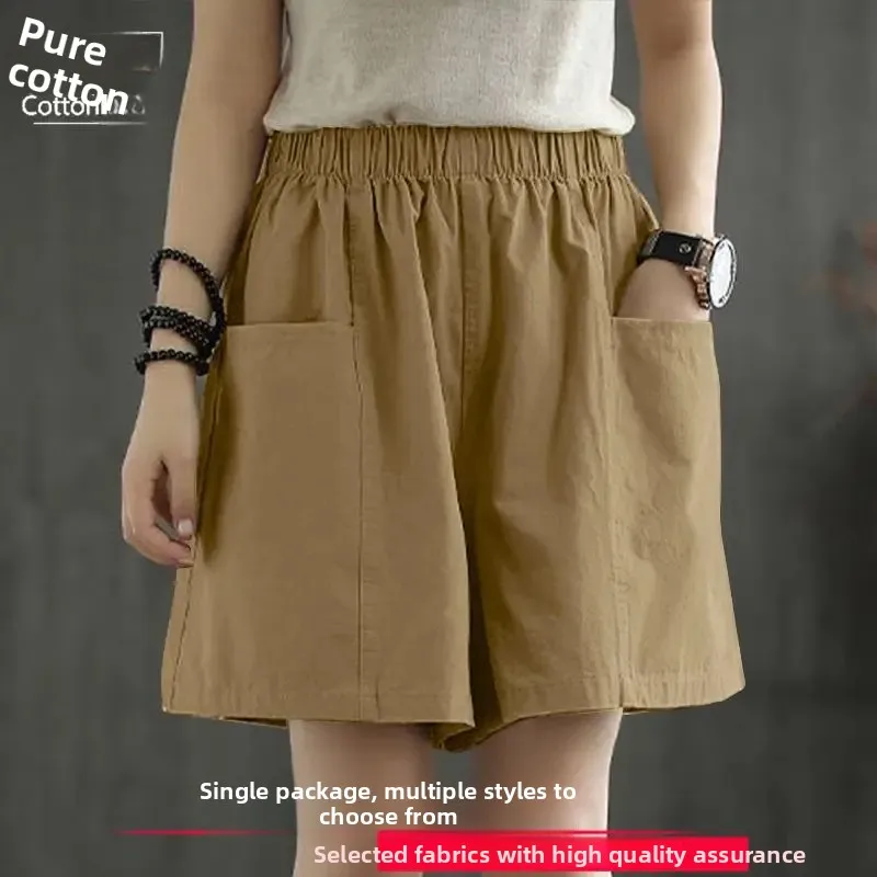 Summer New Casual Cotton Blend Women’s Short Pants Five-Point Workwear Loose High Waist Wide Leg