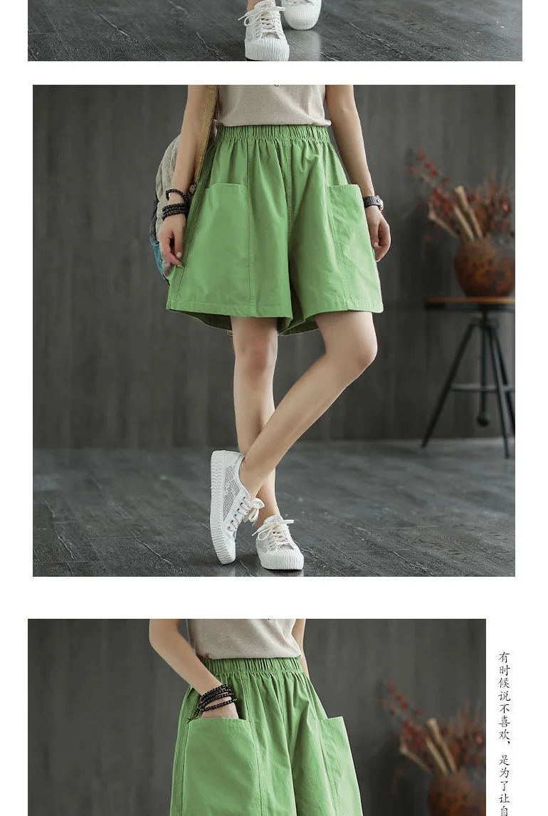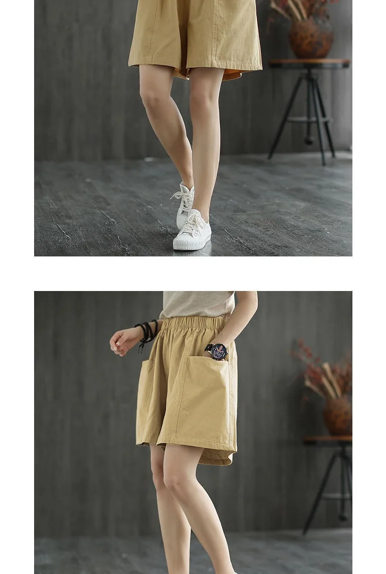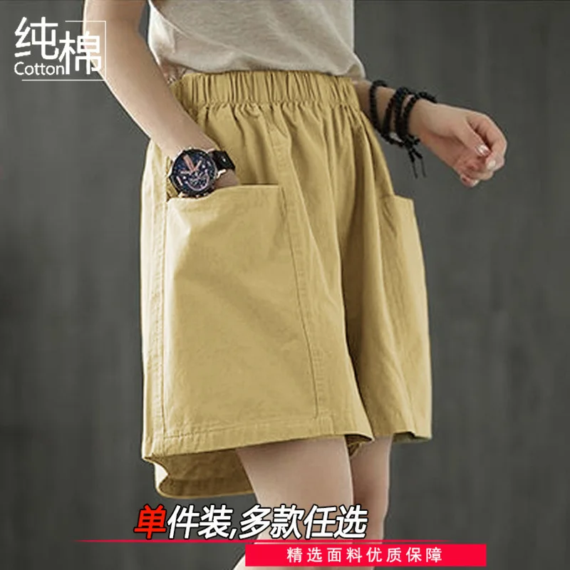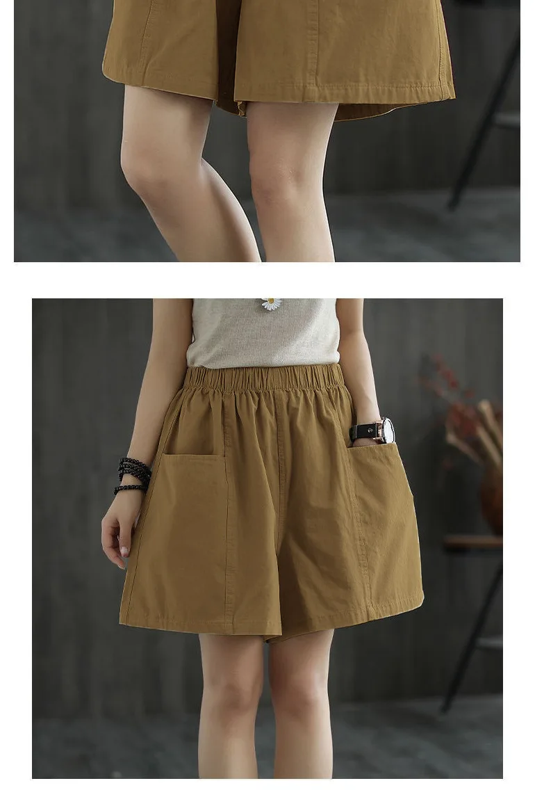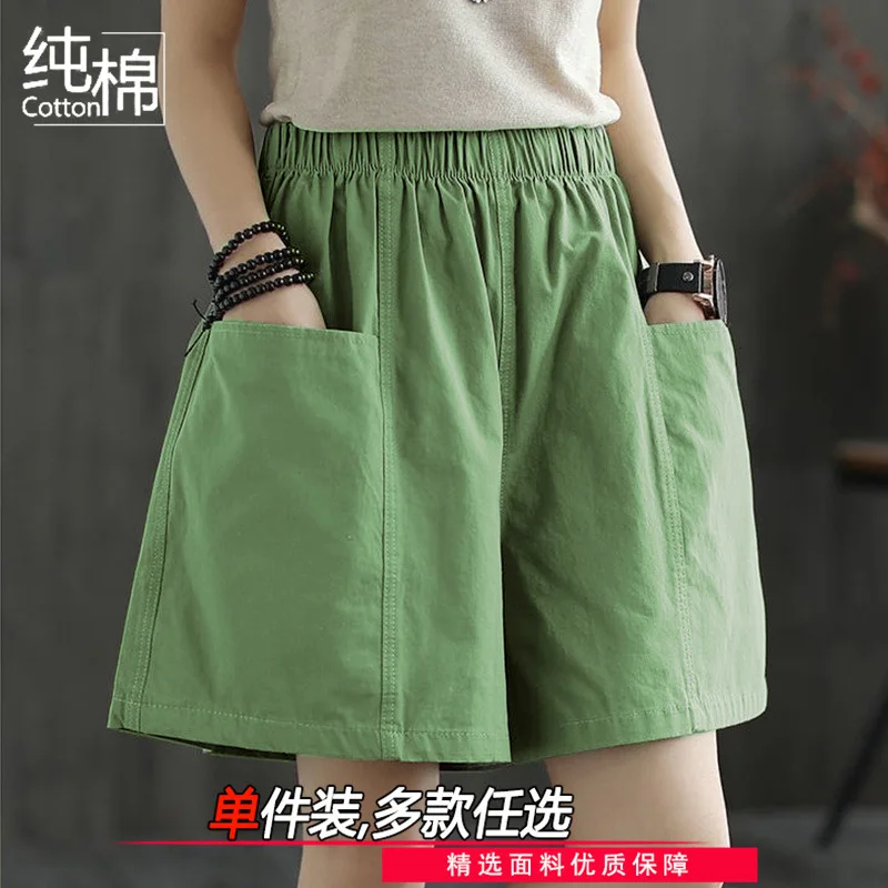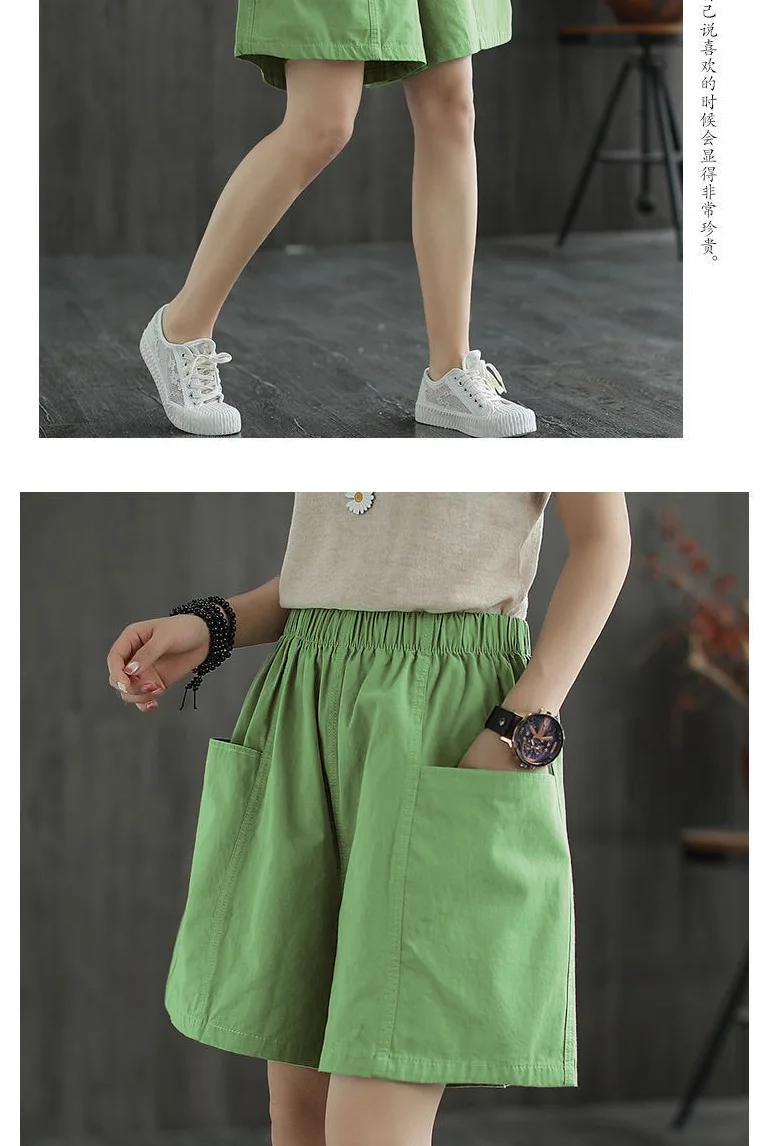Summer New Casual Cotton Blend Women’s Short Pants Five-Point Workwear Loose High Waist Wide Leg