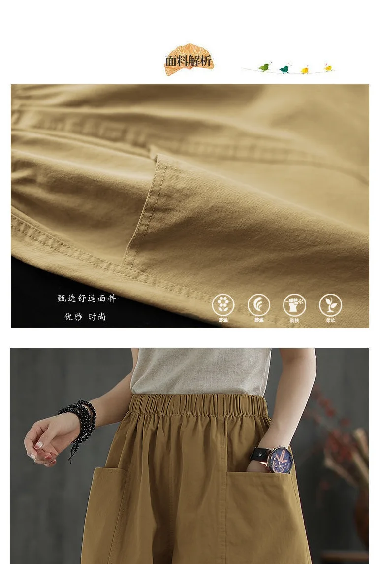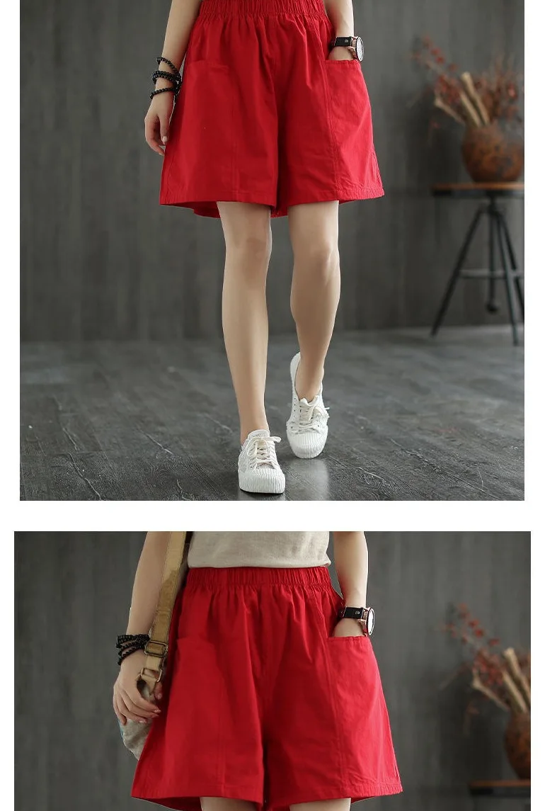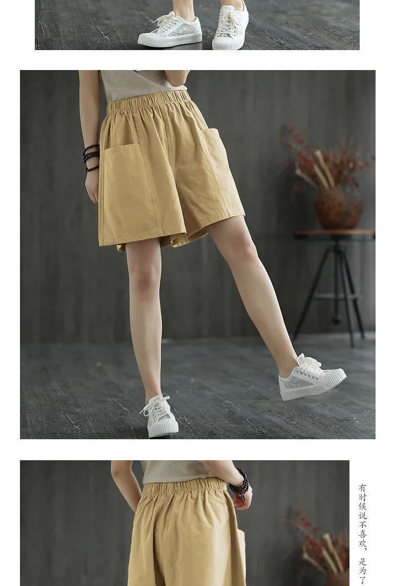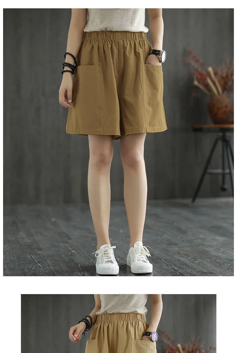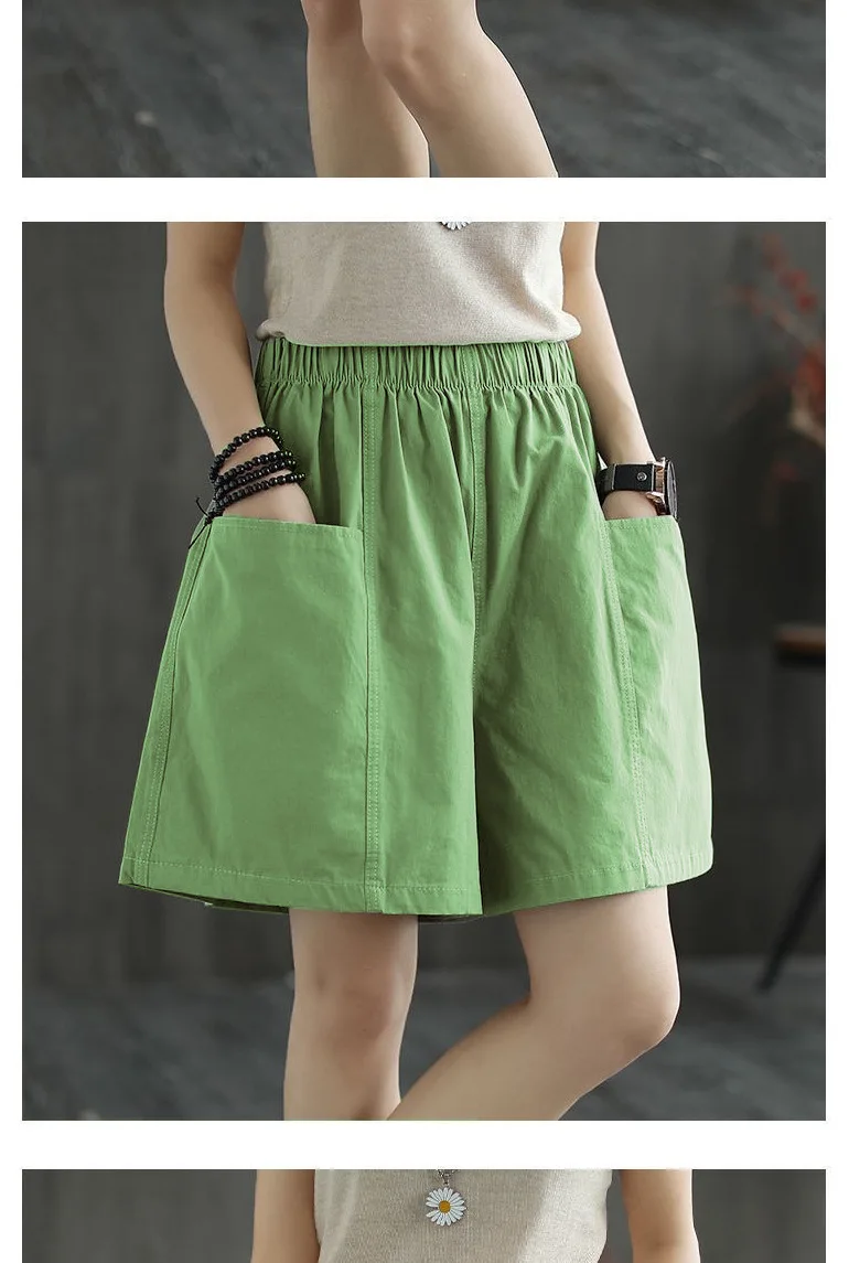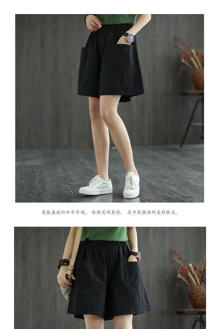Summer New Casual Cotton Blend Women’s Short Pants Five-Point Workwear Loose High Waist Wide Leg