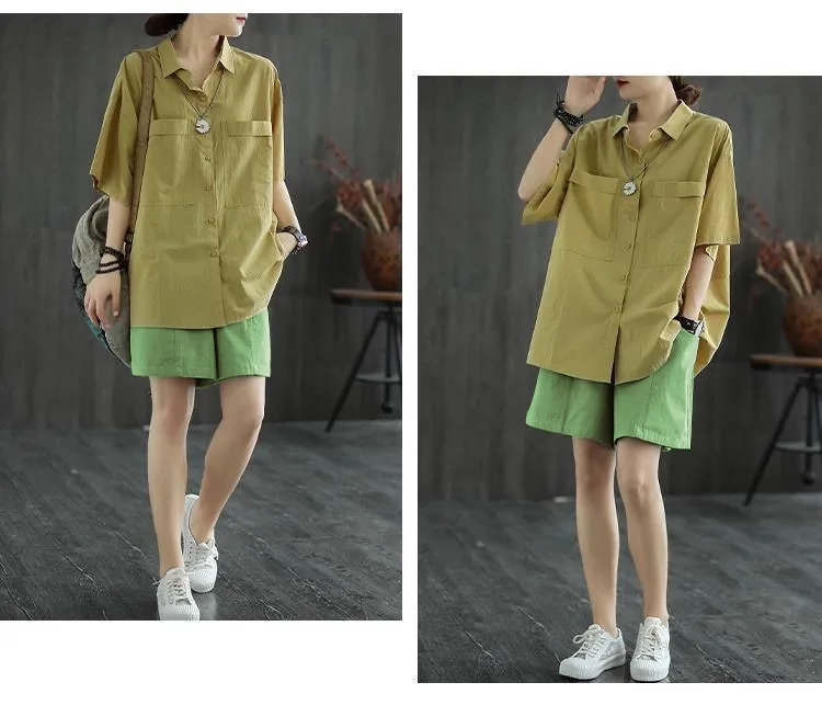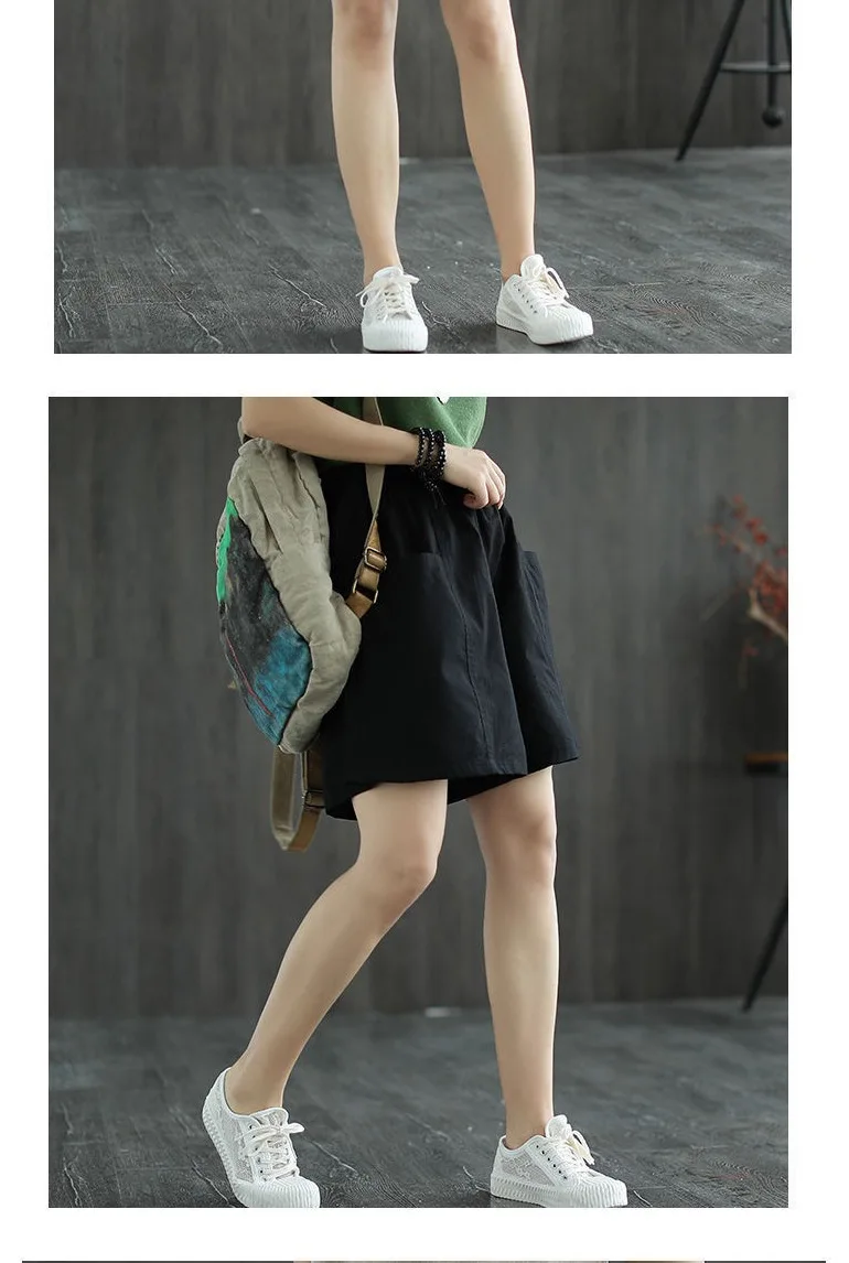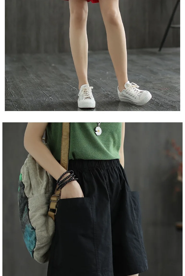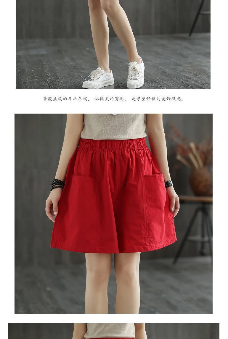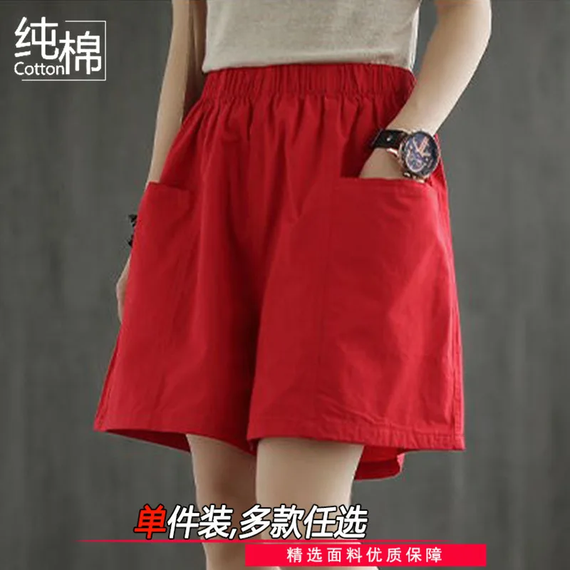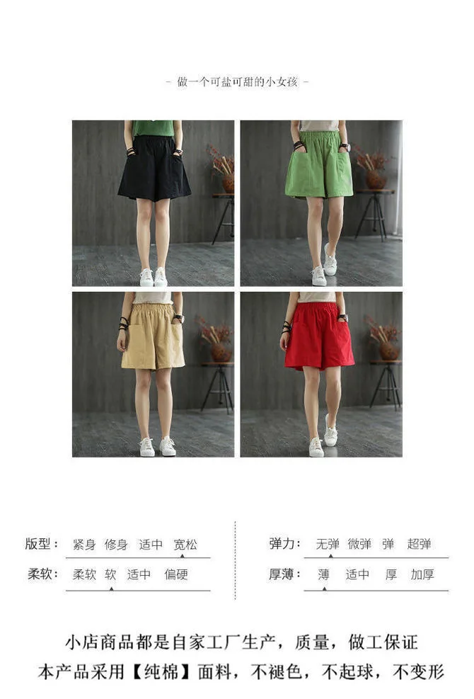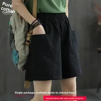 Summer New Casual Cotton Blend Women’s Short Pants Five-Point Workwear Loose High Waist Wide Leg