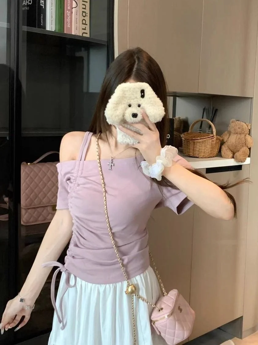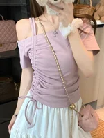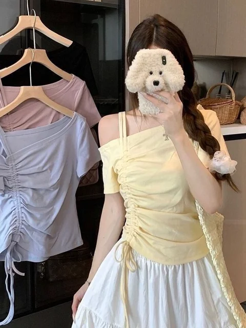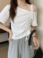 This T-shirt features a trendy off-shoulder design, perfect for showcasing your stylish side.