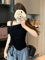 The unique drawstring detail adds a playful touch to this otherwise simple T-shirt, making it stand out in any crowd.