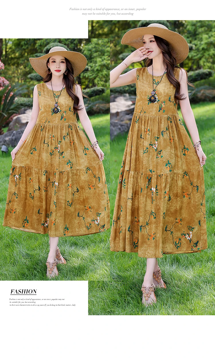 The A-line silhouette of the dress offers a flattering fit, accentuating your curves while providing comfort.