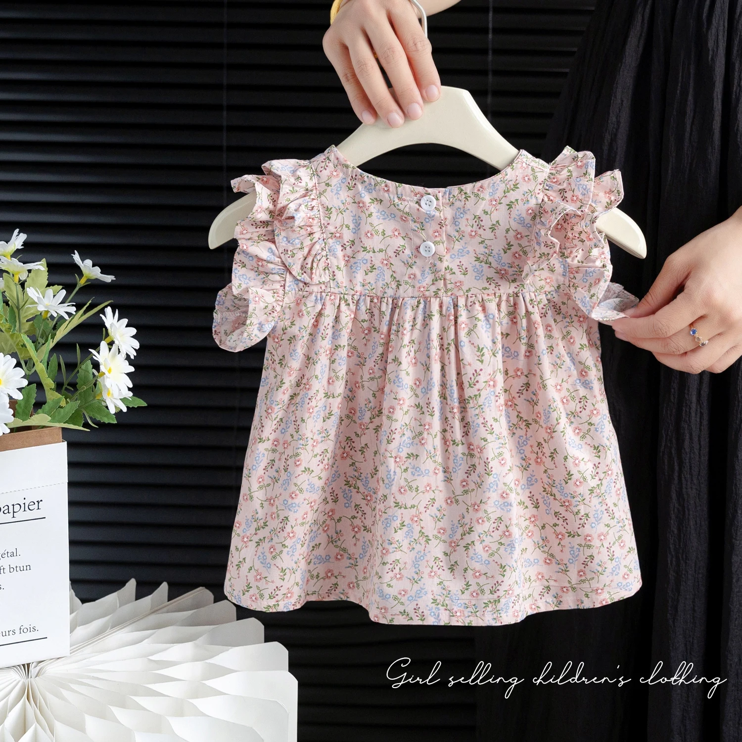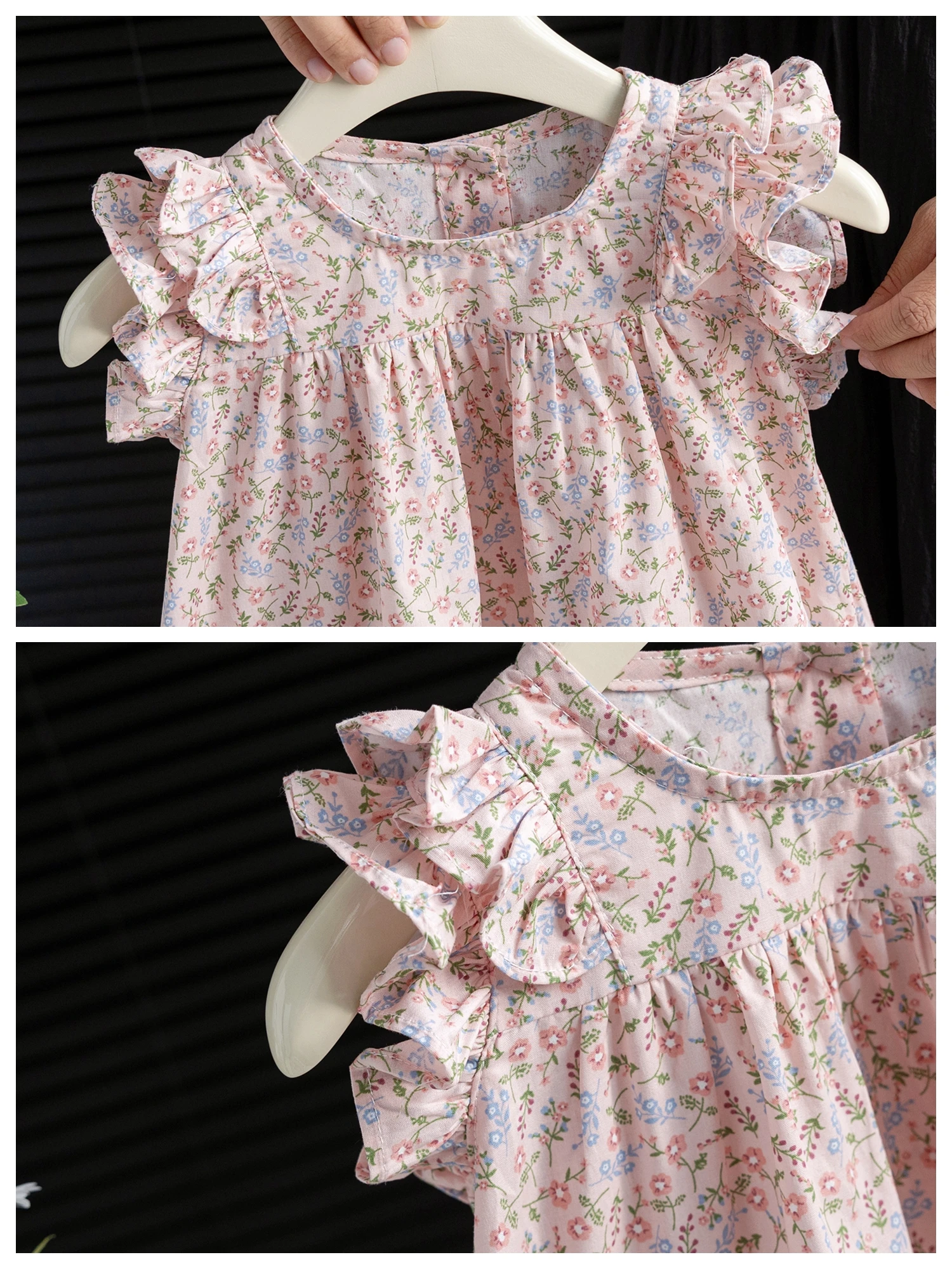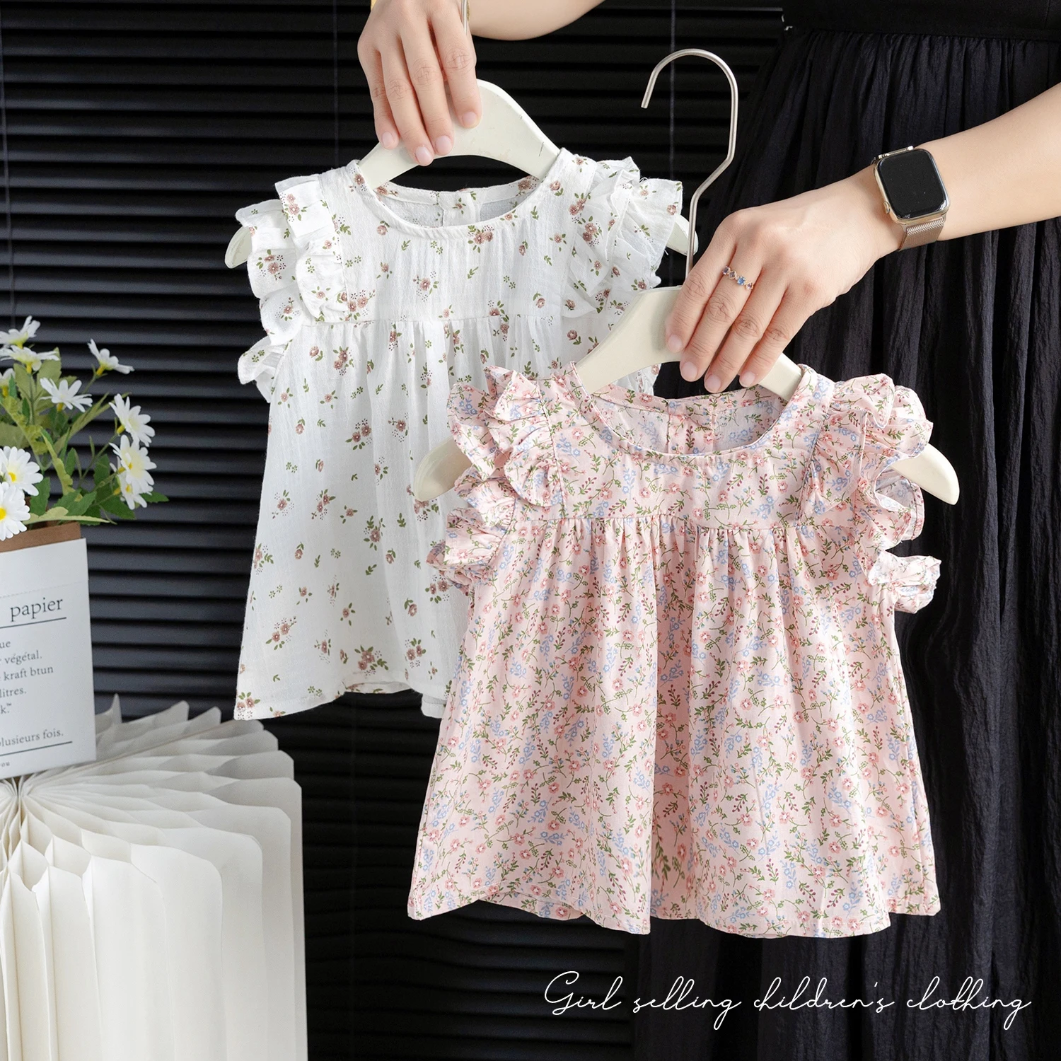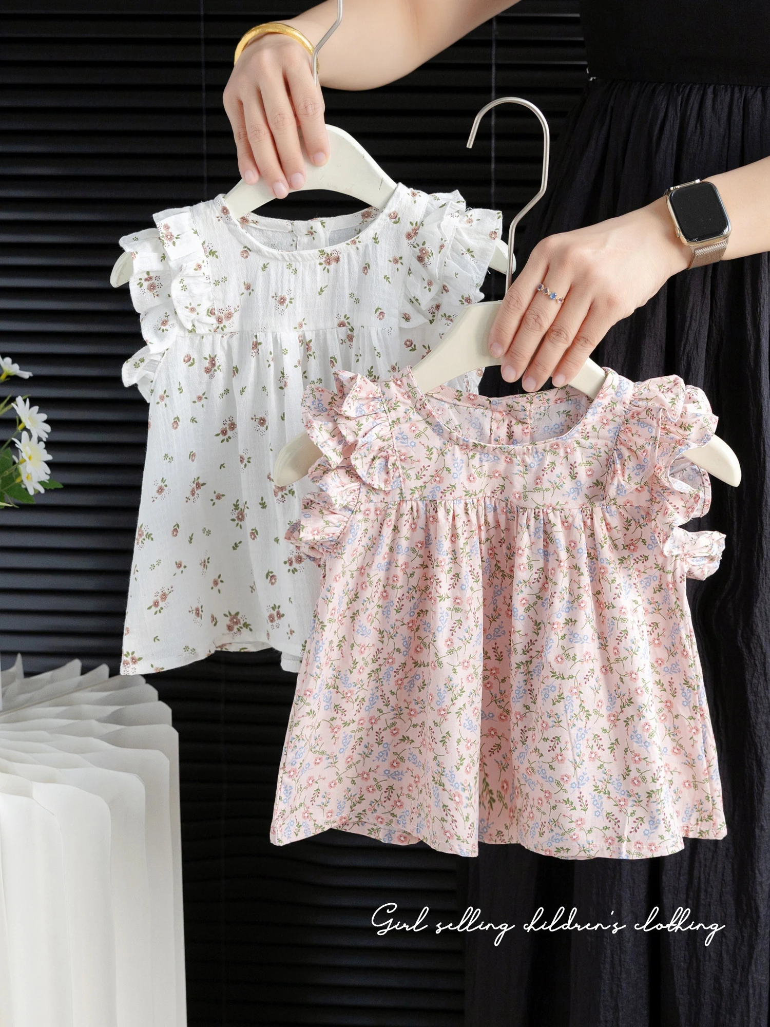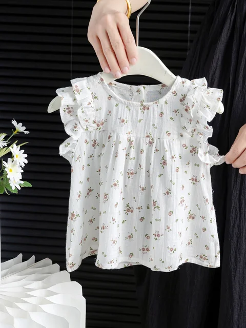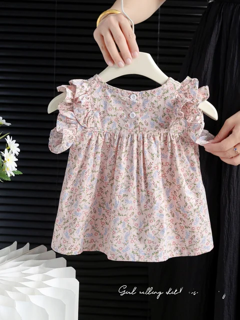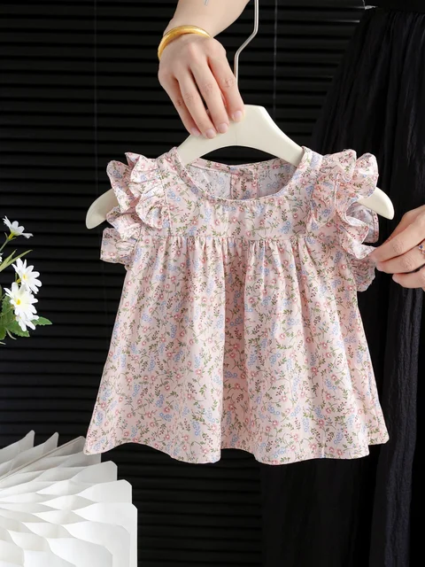 Summer New Sle Girls irt Top Thin Fly Sve Flower  Cute Doll irt Trendy Baby Girl Cotton Blend Casual Faion