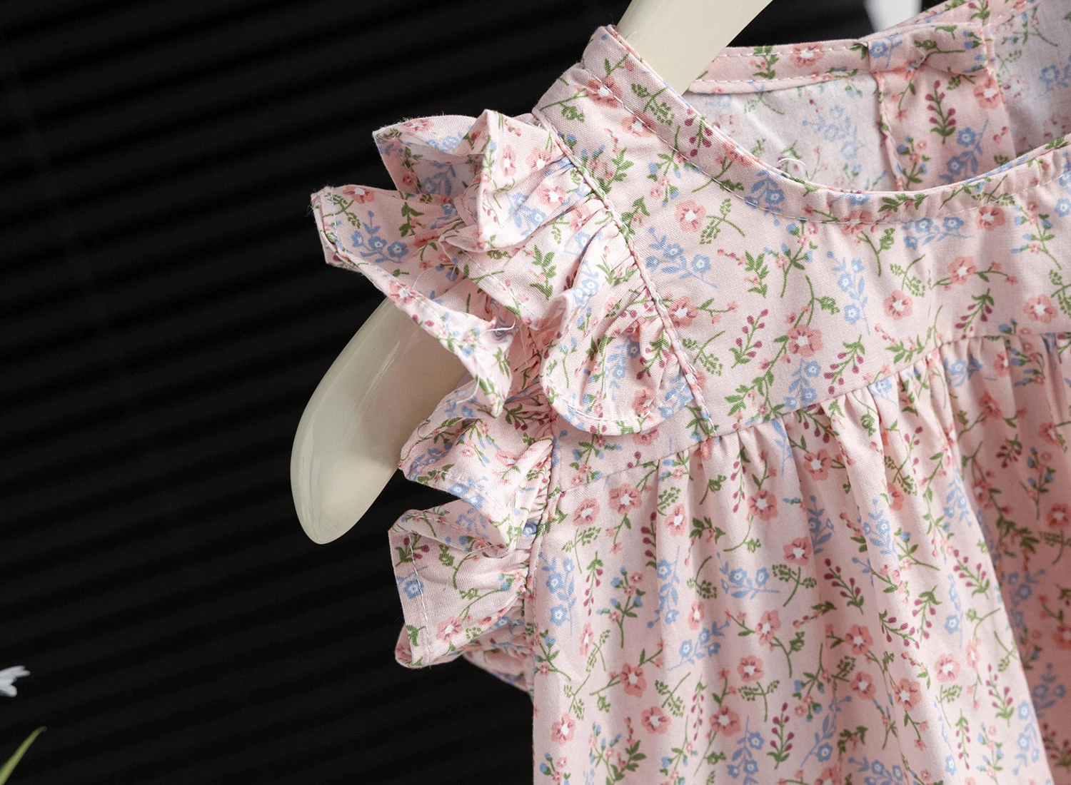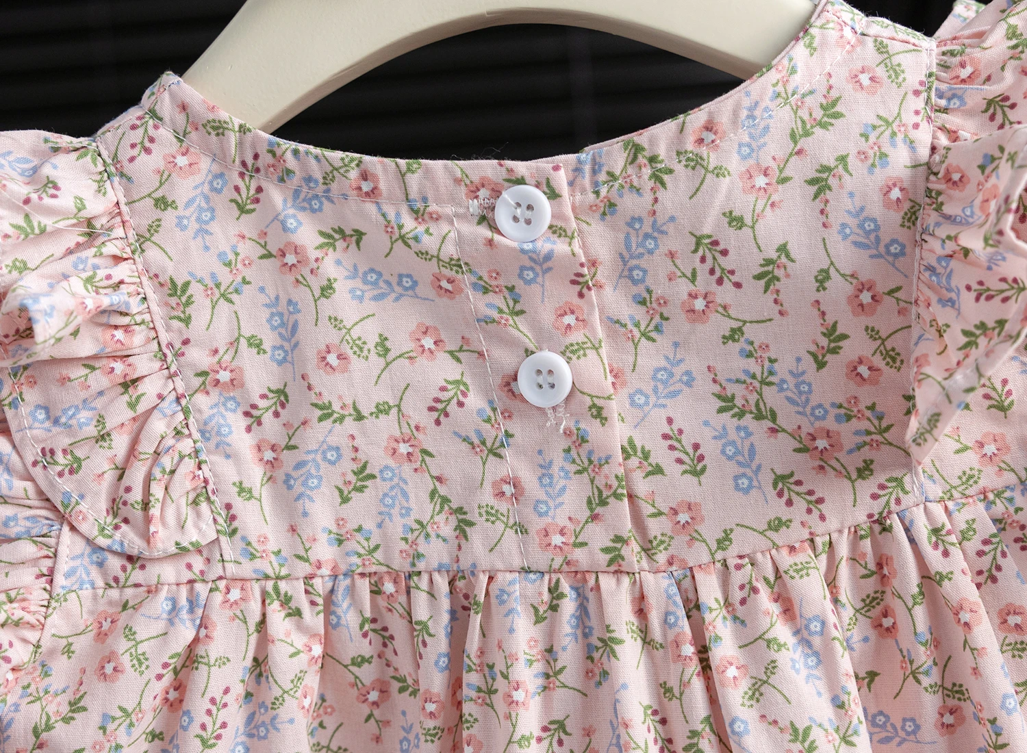 Featuring a trendy floral pattern and ruffle sleeves, this shirt adds a touch of elegance to your little girl’s wardrobe.