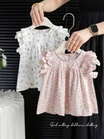 Summer New Sle Girls irt Top Thin Fly Sve Flower Cute Doll irt Trendy Baby Girl Cotton Blend Casual