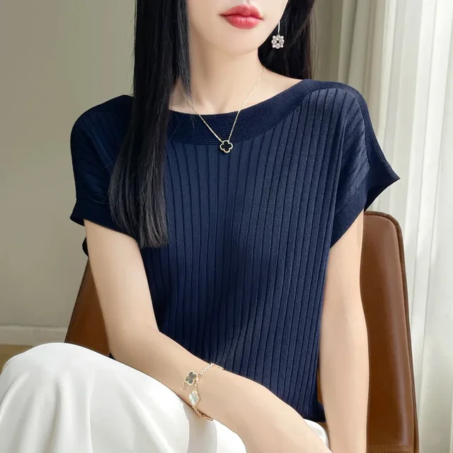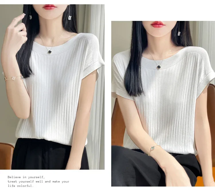 Be the first to review “Summer New Style Ice Silk Knitted Short Sleeve Women Casual Loose Slim Fit Half Sleeve Base Thin Top”